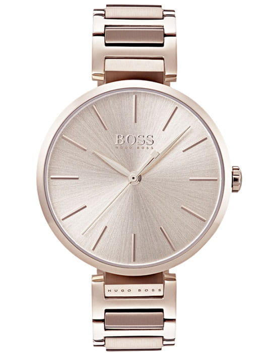 Женские немецкие часы Hugo Boss HB-200-02, кварцевый механизм с высокой точностью. Класс водозащиты: 30 метров, позволит защитить корпус от случайных брызг или капель дождя. Корпус часов изготовлен из стали, розового цвета.