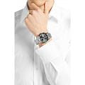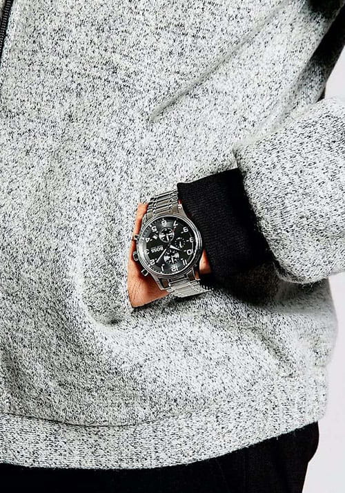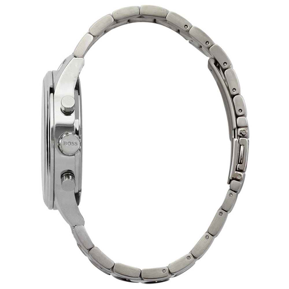 Мужские изысканные часы Hugo Boss Aeroliner HB1513181 сочетают спортивный стиль с функциональностью в корпусе из нержавеющей стали диаметром 44 мм с прочным минеральным стекломМинеральное стеклоМинеральное стекло представляет собой искусственно выращенный минерал кварца. Такое стекло отличается особой устойчивостью к повреждениям и царапинам. Уступает по некоторым качествам сапфировому стеклу., устойчивым к царапинам. Модель оснащена точным кварцевым механизмом с функциями хронографаХронографФункция позволяет измерять отрезки времени с особой точностью: часы, минуты, секунды. Верным признаком хронографа является наличие на циферблате 3 дополнительных окошек-счётчиков. и календарём (индикация даты), а также арабскими метками на чёрном стильном циферблате для оптимальной читаемости. Люминесцентное покрытиеЛюминесцентное покрытиеПозволяет считывать показания времени в темноте. Производители наносят на стрелки, часовые индексы, безель или поверхность циферблата светонакопительный состав, дающий холодное свечение. на стрелках обеспечивает превосходную читаемость показаний даже в самых темных условиях.Стальной браслет на раскладной застежкеРаскладная застёжкаТакой тип застёжки используется только на браслетах из металла. Она никогда не раскрывается полностью, происходит разделение на 2 и более частей. Раскладывающая застёжка снизит вероятность потери часов к минимуму. гарантирует комфорт и безопасность при носке, а водонепроницаемость WR50 (5 атм) защищает от брызг воды и дождя. Эта модель – отличный выбор для тех, кто ищет сочетание стиля, качества и функциональности. Часы станут не только полезным аксессуаром, но и выразительным элементом вашего имиджа.