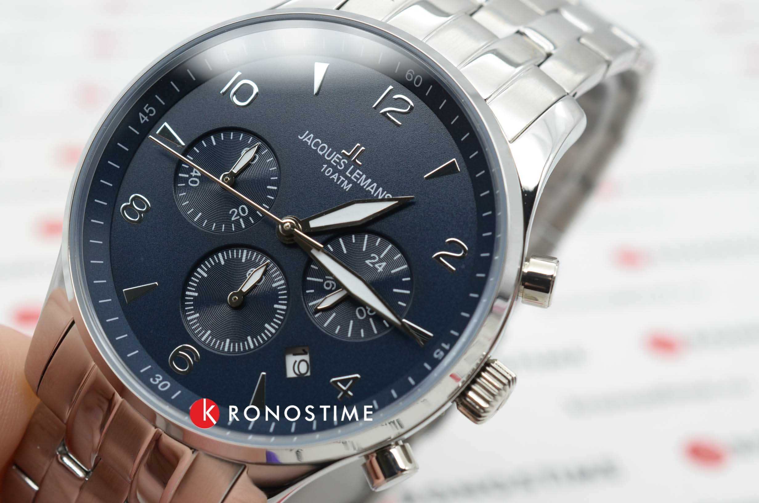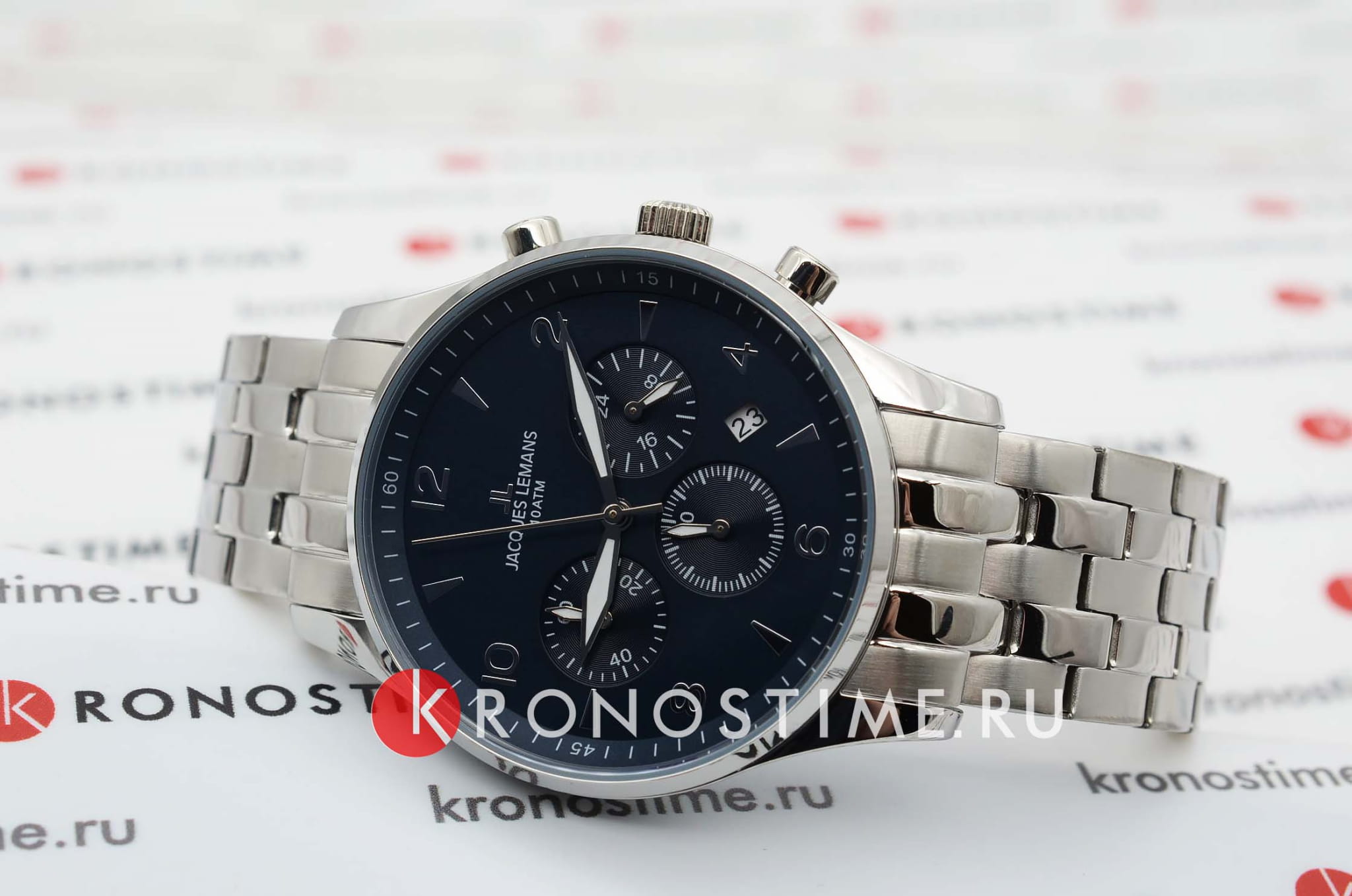 Наручные часы-хронографХронографФункция позволяет измерять отрезки времени с особой точностью: часы, минуты, секунды. Верным признаком хронографа является наличие на циферблате 3 дополнительных окошек-счётчиков. Jacques Lemans с датой, 12/24-часовым форматом времени и секундомеромСекундомерСекундоме́р — прибор, способный измерять интервалы времени с точностью до долей секунды. призваны ставить на первое место индивидуальный стиль владельца, классическая элегантность придётся по вкусу каждому. Брендовые часы привлекают минималистичным дизайном, отсутствие вычурности и обилия декорирующих элементов делают модель лучшим решением для ежедневного применения. Аксессуар можно носить с деловыми костюмами и повседневной одеждой, он органично сочетается как с классическими брюками, так и с рваными джинсами. Это настоящее часовое искусство высокого качества, часы считаются актуальным вариантом на все времена и с идеальной точностью показывают время благодаря надёжному японскому механизму.