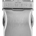 Кварцевый хронографХронографФункция позволяет измерять отрезки времени с особой точностью: часы, минуты, секунды. Верным признаком хронографа является наличие на циферблате 3 дополнительных окошек-счётчиков. в мощном корпусе диаметром 48 мм. Нержавеющая сталь, из которой он сделан, отличается гипоаллергенными свойствами и стойкостью к коррозии. Широкий контрастный безельБезельВнешний ободок, закрепляющий стекло. В спортивных часах так называется поворотное кольцо с делениями на циферблате, выполняет роль таймера – замеряет отрезки времени на шкале. Неподвижный безель – элемент декора. Однонаправленно вращающийся безель на дайверских часах позволяет фиксировать моменты погружения и выныривания на поверхность. с тахиметрической шкалой обрамляет черный циферблат. На нем расположены три дополнительных индикатора и окошко даты. С помощью индикаторов можно засекать временные промежутки (секунды и минуты) и определять время в 24-часовом формате времяисчисления. В модели установлено минеральное стеклоМинеральное стеклоМинеральное стекло представляет собой искусственно выращенный минерал кварца. Такое стекло отличается особой устойчивостью к повреждениям и царапинам. Уступает по некоторым качествам сапфировому стеклу.. Повышенная водостойкость равна 10 атмосфер. Браслет из нержавеющей стали удерживает на запястье раскладная застёжкаРаскладная застёжкаТакой тип застёжки используется только на браслетах из металла. Она никогда не раскрывается полностью, происходит разделение на 2 и более частей. Раскладывающая застёжка снизит вероятность потери часов к минимуму.. Часы Jacques Lemans, надежные и функциональные, хорошо дополнят образ в спортивном или повседневном стиле.