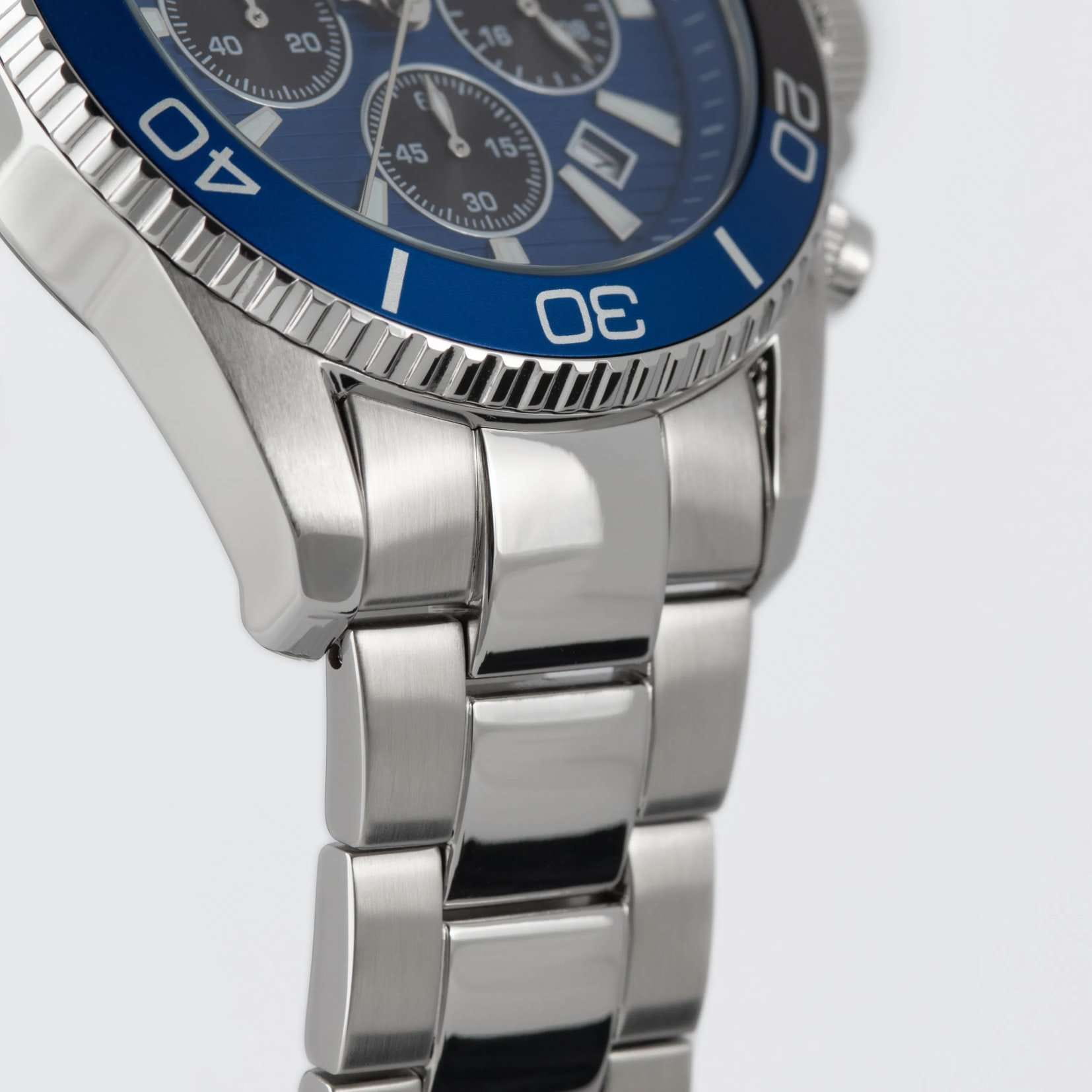Мужские кварцевые часы-хронографХронографФункция позволяет измерять отрезки времени с особой точностью: часы, минуты, секунды. Верным признаком хронографа является наличие на циферблате 3 дополнительных окошек-счётчиков. с секундомеромСекундомерСекундоме́р — прибор, способный измерять интервалы времени с точностью до долей секунды. Jacques Lemans 1-2206H – лаконичная красота и изысканная элегантность. Оригинальная модель с классическим оформлением станет превосходным завершением образа, наделив его индивидуальным характером. Корпус выполнен из нержавеющей стали серебристого цвета, диаметром 44 мм, что обеспечивает долговечность и утончённый внешний вид. Минеральное стеклоМинеральное стеклоМинеральное стекло представляет собой искусственно выращенный минерал кварца. Такое стекло отличается особой устойчивостью к повреждениям и царапинам. Уступает по некоторым качествам сапфировому стеклу. повышенной прочности Crystex защищает циферблат от царапин. Поворотный безельБезельВнешний ободок, закрепляющий стекло. В спортивных часах так называется поворотное кольцо с делениями на циферблате, выполняет роль таймера – замеряет отрезки времени на шкале. Неподвижный безель – элемент декора. Однонаправленно вращающийся безель на дайверских часах позволяет фиксировать моменты погружения и выныривания на поверхность. с PVD-покрытиемPVDУльтратонкое покрытие наносится в технике вакуумного напыления, сочетает в себе нитрид титана особой прочности со слоем золота или оксида хрома. Несёт в себе декоративную или защитную функцию.. Стальной браслет на раскладной застёжке с фиксаторомРаскладная застёжкаТакой тип застёжки используется только на браслетах из металла. Она никогда не раскрывается полностью, происходит разделение на 2 и более частей. Раскладывающая застёжка снизит вероятность потери часов к минимуму. обеспечивает комфортное ношение Водозащита 200 метров позволит плавать, нырять и заниматься другими водными видами спорта. Стрелки и метки с люминесцентным покрытиемЛюминесцентное покрытиеПозволяет считывать показания времени в темноте. Производители наносят на стрелки, часовые индексы, безель или поверхность циферблата светонакопительный состав, дающий холодное свечение. позволяющие легко определять время даже в темноте. 12-ти и 24-х часовой формат времени. Окошко даты находится в положении между 4 и 5 часами. Рифленая заводная головка с защитой. Это аксессуар для мужчины, который ценит классический стиль и функциональность.
