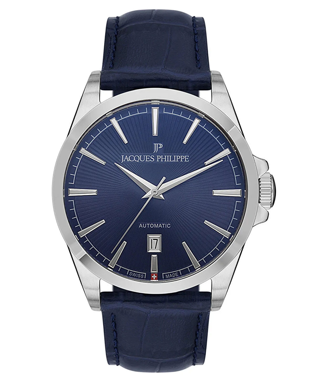 Швейцарские механические мужские часы с автоподзаводом Jacques Philippe Victus JPAGS551132. Сапфировое стеклоСапфировое стеклоПрочный и надёжный материал из кристалла сапфира синтетического происхождения, характеризующийся особой твёрдостью и устойчивостью к царапинам и повреждениям. устойчивое к появлению царапин, обладающее высокой прозрачностью. Корпус часов изготовлен из нержавеющей стали. Окошко даты находится в положении 6 часов. Класс водозащиты: 100 метров, позволит плавать, нырять и заниматься другими водными видами спорта. Кожаный ремешок с классической застежкой.