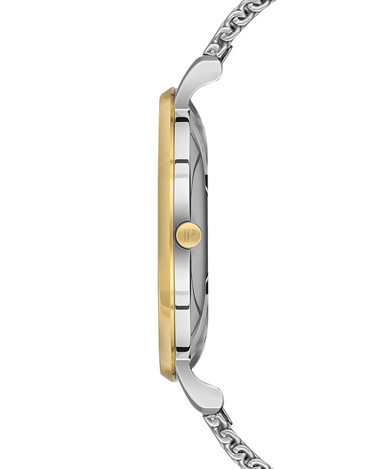 Швейцарские мужские часы Jacques Philippe Base JPQGS077226YG, кварцевый механизм с высокой точностью. Сапфировое стеклоСапфировое стеклоПрочный и надёжный материал из кристалла сапфира синтетического происхождения, характеризующийся особой твёрдостью и устойчивостью к царапинам и повреждениям. устойчивое к появлению царапин, обладающее высокой прозрачностью. Корпус часов изготовлен из нержавеющей стали. Класс водозащиты: 30 метров, позволит защитить корпус от случайных брызг или капель дождя. Стальной браслет на раскладном замкеРаскладной замокДанный вариант застежки используется только на часах с металлическим браслетом. Отличительная особенность такого крепления в том, что длина браслета становится универсальной и вы можете самостоятельно отрегулировать нужный вам размер – застежка просто двигается по браслету часов.. БезельБезельВнешний ободок, закрепляющий стекло. В спортивных часах так называется поворотное кольцо с делениями на циферблате, выполняет роль таймера – замеряет отрезки времени на шкале. Неподвижный безель – элемент декора. Однонаправленно вращающийся безель на дайверских часах позволяет фиксировать моменты погружения и выныривания на поверхность. с PVD-покрытиемPVDУльтратонкое покрытие наносится в технике вакуумного напыления, сочетает в себе нитрид титана особой прочности со слоем золота или оксида хрома. Несёт в себе декоративную или защитную функцию..