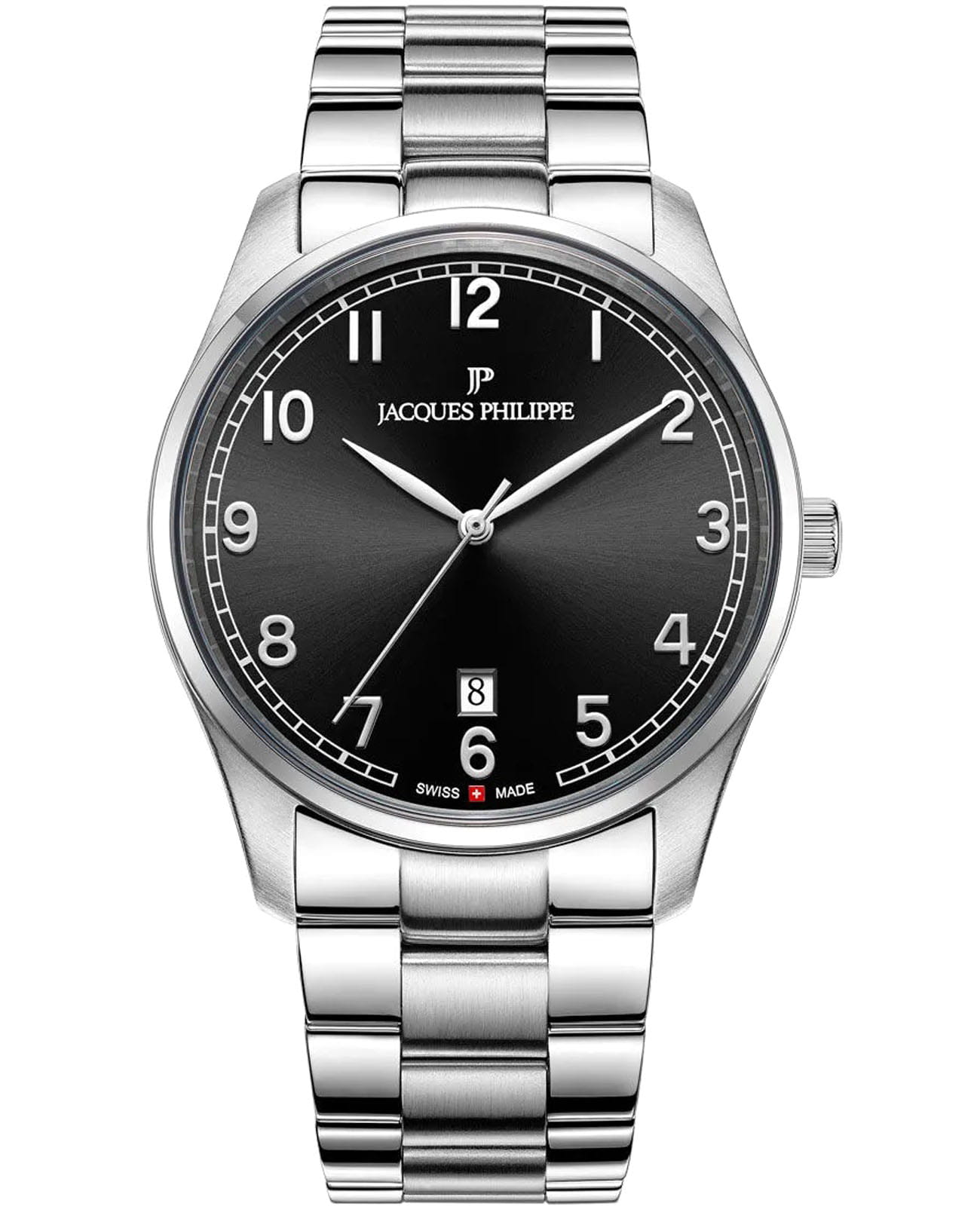 Швейцарские мужские часы Jacques Philippe Maturus JPQGS881316 кварцевый механизм с высокой точностью. Прочное сапфировое стеклоСапфировое стеклоПрочный и надёжный материал из кристалла сапфира синтетического происхождения, характеризующийся особой твёрдостью и устойчивостью к царапинам и повреждениям. устойчивое к царапинам и механическим повреждениям. Циферблат черного цвета украшен классическими стрелками и метками гармонично дополняющие общий дизайн модели. Элегантный корпус изготовлен из нержавеющей стали, диаметром 41 мм, что делает их устойчивыми к внешним воздействиям и придает благородный вид. Стальной браслет на застёжке-бабочкеЗастёжка "бабочка"Такой вид застёжки дополняется предохранителями, помогающими избежать случайного раскрытия браслета. Обладают изящным исполнением. обеспечивает комфортное и безопасное ношение. Окошко даты находится в положении 6 часов. Класс водозащиты: 50 метров позволит защитить корпус от случайных брызг или капель дождя. Эти часы станут идеальным выбором для мужчин, ценящих стиль, качество и функциональность.