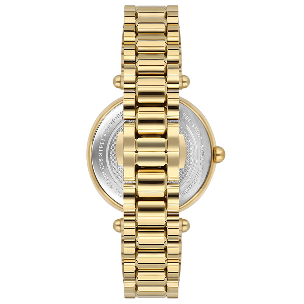 Швейцарские женские часы Jacques Philippe Mistress JPQLS082324, кварцевый механизм с высокой точностью. Сапфировое стеклоСапфировое стеклоПрочный и надёжный материал из кристалла сапфира синтетического происхождения, характеризующийся особой твёрдостью и устойчивостью к царапинам и повреждениям. устойчивое к появлению царапин, обладающее высокой прозрачностью. Корпус часов изготовлен из нержавеющей стали с IP-покрытиемIP-покрытиеМетод ионного напыления. Демонстрирует повышенную устойчивость к истиранию, окислению и химическим веществам. Под воздействием высокого давления и температуры около 1500°C молекулы металла надёжно соединяются с частицами корпуса часов.. Класс водозащиты: 50 метров, позволит защитить корпус от случайных брызг или капель дождя. Стальной браслет на застёжке-бабочке с кнопкамиЗастёжка "бабочка"Такой вид застёжки дополняется предохранителями, помогающими избежать случайного раскрытия браслета. Обладают изящным исполнением. . Циферблат и безельБезельВнешний ободок, закрепляющий стекло. В спортивных часах так называется поворотное кольцо с делениями на циферблате, выполняет роль таймера – замеряет отрезки времени на шкале. Неподвижный безель – элемент декора. Однонаправленно вращающийся безель на дайверских часах позволяет фиксировать моменты погружения и выныривания на поверхность. инкрустированы кристаллами. Окошко даты находится в положении 6 часов.