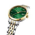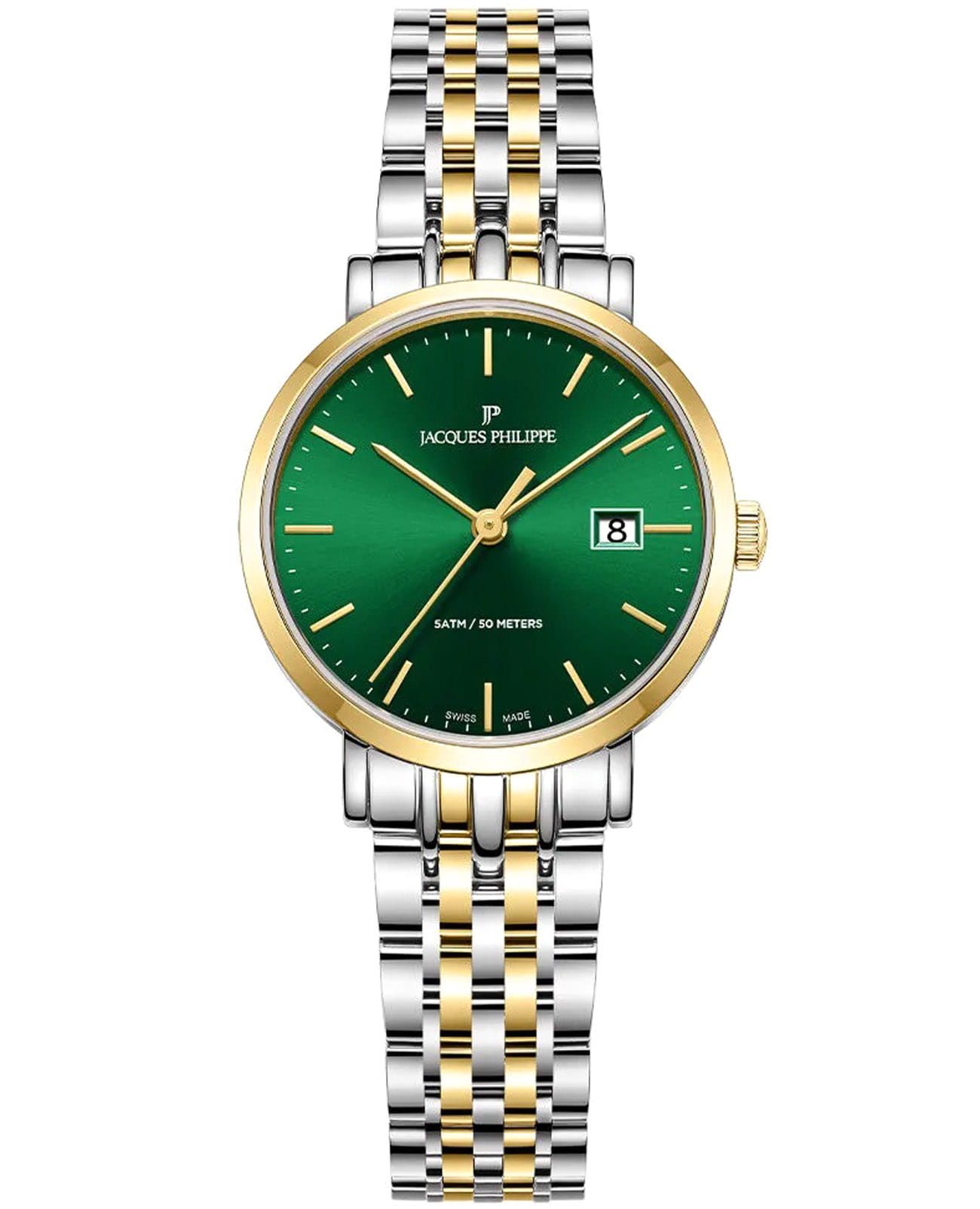 Швейцарские женские часы Jacques Philippe Ligata JPQLS9473X8 кварцевый механизм с высокой точностью. Прочное сапфировое стеклоСапфировое стеклоПрочный и надёжный материал из кристалла сапфира синтетического происхождения, характеризующийся особой твёрдостью и устойчивостью к царапинам и повреждениям. устойчивое к царапинам и механическим повреждениям. Циферблат зеленого цвета украшен классическими стрелками и метками, что гармонично дополняет общий дизайн модели. Элегантный корпус изготовлен из нержавеющей стали, диаметром 29 мм, что делает их устойчивыми к внешним воздействиям и придает благородный вид. Неподвижный безельБезельВнешний ободок, закрепляющий стекло. В спортивных часах так называется поворотное кольцо с делениями на циферблате, выполняет роль таймера – замеряет отрезки времени на шкале. Неподвижный безель – элемент декора. Однонаправленно вращающийся безель на дайверских часах позволяет фиксировать моменты погружения и выныривания на поверхность. с IP-покрытиемIP-покрытиеМетод ионного напыления. Демонстрирует повышенную устойчивость к истиранию, окислению и химическим веществам. Под воздействием высокого давления и температуры около 1500°C молекулы металла надёжно соединяются с частицами корпуса часов. золотистого цвета. Стальной браслет с частичным IP-покрытиемIP-покрытиеМетод ионного напыления. Демонстрирует повышенную устойчивость к истиранию, окислению и химическим веществам. Под воздействием высокого давления и температуры около 1500°C молекулы металла надёжно соединяются с частицами корпуса часов. на застёжке-бабочке с кнопкамиЗастёжка "бабочка"Такой вид застёжки дополняется предохранителями, помогающими избежать случайного раскрытия браслета. Обладают изящным исполнением. обеспечивает комфортное и безопасное ношение. Окошко даты находится в положении 3 часа. Класс водозащиты: 50 метров позволит защитить корпус от случайных брызг или капель дождя. Эти часы станут идеальным выбором для женщин, ценящих стиль, качество и функциональность и элегантность.