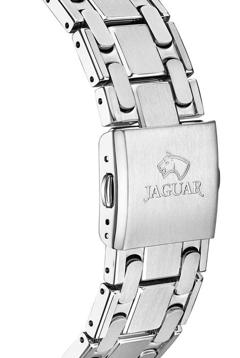 Мужские швейцарские часы Jaguar Diplomatic J1029/4 представляют собой воплощение высокого часового искусства. Они оснащены механическим механизмом с автоподзаводом, что обеспечивает точность и надёжность работы. Часы защищены сапфировым стекломСапфировое стеклоПрочный и надёжный материал из кристалла сапфира синтетического происхождения, характеризующийся особой твёрдостью и устойчивостью к царапинам и повреждениям., устойчивым к мелким механическим повреждениям, что гарантирует сохранность механизма. Корпус часов выполнен из нержавеющей стали, придающий ему прочность и долговечность. Стрелки и метки часов покрыты люминесцентным составомЛюминесцентное покрытиеПозволяет считывать показания времени в темноте. Производители наносят на стрелки, часовые индексы, безель или поверхность циферблата светонакопительный состав, дающий холодное свечение., обеспечивающий их хорошую видимость в условиях недостаточной освещённости. Окошко даты расположено в положении 6 часов. Класс водозащиты часов составляет 100 метров, что позволяет плавать, нырять и заниматься другими водными видами спорта. Изысканный стальной браслет на раскладной застёжкеРаскладная застёжкаТакой тип застёжки используется только на браслетах из металла. Она никогда не раскрывается полностью, происходит разделение на 2 и более частей. Раскладывающая застёжка снизит вероятность потери часов к минимуму., что обеспечивает удобство и комфорт при ношении. Стильный  циферблат и изысканные детали делают эти часы незаменимым аксессуаром для любого случая, от официальных мероприятий до повседневного использования.