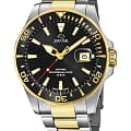 Мужские швейцарские часы Jaguar Executive Diver J863/D. Кварцевый швейцарский калибр Ronda 6003D. Сапфировое стеклоСапфировое стеклоПрочный и надёжный материал из кристалла сапфира синтетического происхождения, характеризующийся особой твёрдостью и устойчивостью к царапинам и повреждениям. устойчивое к мелким механическим повреждениям. Корпус и браслет часов изготовлены из нержавеющей стали. Стрелки и метки с люминесцентным покрытиемЛюминесцентное покрытиеПозволяет считывать показания времени в темноте. Производители наносят на стрелки, часовые индексы, безель или поверхность циферблата светонакопительный состав, дающий холодное свечение.. Окошко даты находится в положении 3 часа. Класс водозащиты: 200 метров, позволит плавать, нырять и заниматься другими водными видами спорта. Стальной браслет с частичным PVD-покрытиемPVDУльтратонкое покрытие наносится в технике вакуумного напыления, сочетает в себе нитрид титана особой прочности со слоем золота или оксида хрома. Несёт в себе декоративную или защитную функцию. на раскладной застёжкеРаскладная застёжкаТакой тип застёжки используется только на браслетах из металла. Она никогда не раскрывается полностью, происходит разделение на 2 и более частей. Раскладывающая застёжка снизит вероятность потери часов к минимуму.. БезельБезельВнешний ободок, закрепляющий стекло. В спортивных часах так называется поворотное кольцо с делениями на циферблате, выполняет роль таймера – замеряет отрезки времени на шкале. Неподвижный безель – элемент декора. Однонаправленно вращающийся безель на дайверских часах позволяет фиксировать моменты погружения и выныривания на поверхность. с PVD-покрытиемPVDУльтратонкое покрытие наносится в технике вакуумного напыления, сочетает в себе нитрид титана особой прочности со слоем золота или оксида хрома. Несёт в себе декоративную или защитную функцию..