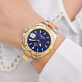 Унисекс швейцарские часы Jaguar Couple Diver J970/2. Кварцевый швейцарский калибр Ronda 6003.d. Сапфировое стеклоСапфировое стеклоПрочный и надёжный материал из кристалла сапфира синтетического происхождения, характеризующийся особой твёрдостью и устойчивостью к царапинам и повреждениям. устойчивое к мелким механическим повреждениям. Корпус часов изготовлен из нержавеющей стали. Стрелки и метки с люминесцентным покрытиемЛюминесцентное покрытиеПозволяет считывать показания времени в темноте. Производители наносят на стрелки, часовые индексы, безель или поверхность циферблата светонакопительный состав, дающий холодное свечение.. Окошко даты находится в положении 3 часа. Класс водозащиты: 200 метров, позволит плавать, нырять и заниматься другими водными видами спорта. Стальной браслет с частичным  PVD-покрытиемPVDУльтратонкое покрытие наносится в технике вакуумного напыления, сочетает в себе нитрид титана особой прочности со слоем золота или оксида хрома. Несёт в себе декоративную или защитную функцию. на раскладной застёжкеРаскладная застёжкаТакой тип застёжки используется только на браслетах из металла. Она никогда не раскрывается полностью, происходит разделение на 2 и более частей. Раскладывающая застёжка снизит вероятность потери часов к минимуму.. БезельБезельВнешний ободок, закрепляющий стекло. В спортивных часах так называется поворотное кольцо с делениями на циферблате, выполняет роль таймера – замеряет отрезки времени на шкале. Неподвижный безель – элемент декора. Однонаправленно вращающийся безель на дайверских часах позволяет фиксировать моменты погружения и выныривания на поверхность. с PVD-покрытиемPVDУльтратонкое покрытие наносится в технике вакуумного напыления, сочетает в себе нитрид титана особой прочности со слоем золота или оксида хрома. Несёт в себе декоративную или защитную функцию..