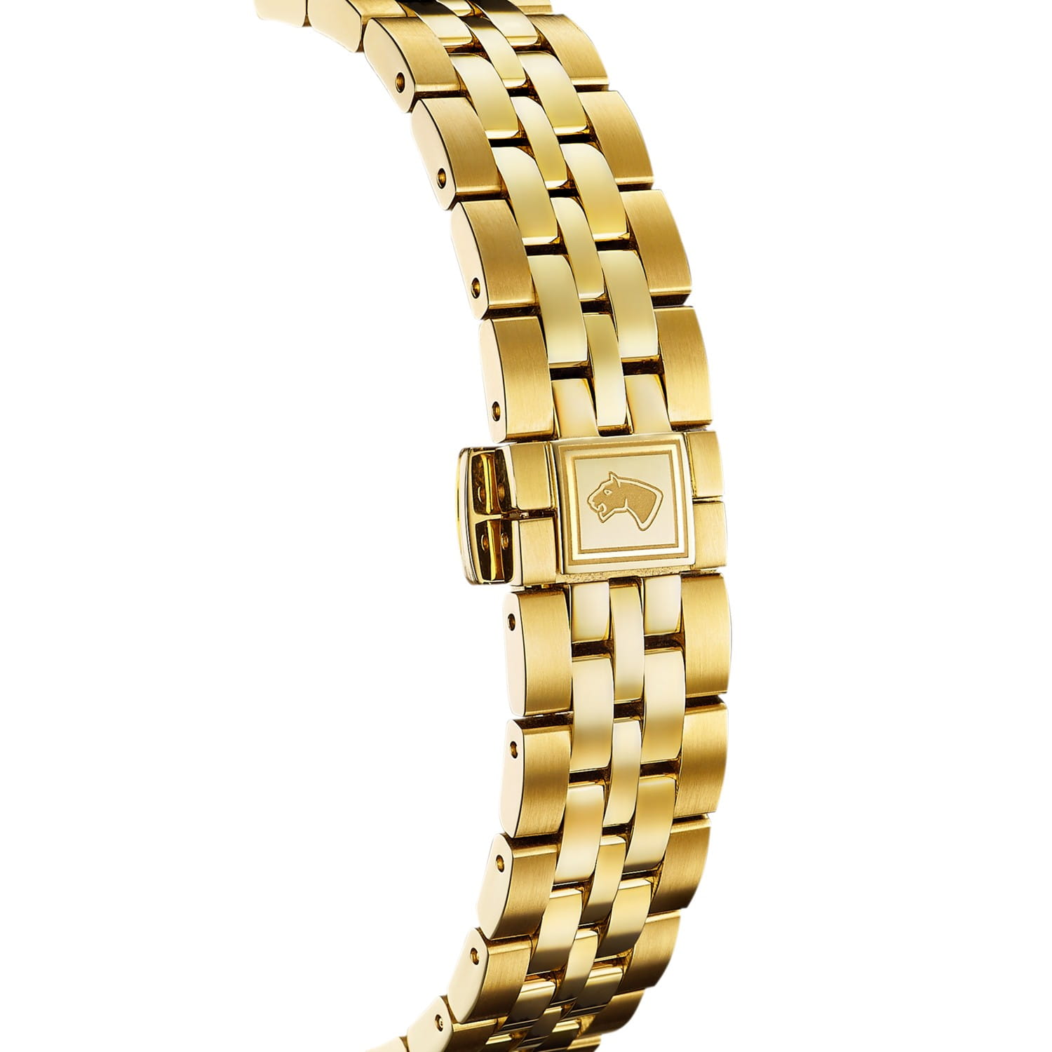 Женские швейцарские часы Jaguar Automatic Open Heart J996/2, механизм — автоподзавод. В часах с автоподзаводом заводная головка практически не используется, что исключает истирание ее материала и материала корпуса. Сапфировое стеклоСапфировое стеклоПрочный и надёжный материал из кристалла сапфира синтетического происхождения, характеризующийся особой твёрдостью и устойчивостью к царапинам и повреждениям. устойчивое к мелким механическим повреждениям. Корпус часов изготовлен из нержавеющей стали с PVD-покрытиемPVDУльтратонкое покрытие наносится в технике вакуумного напыления, сочетает в себе нитрид титана особой прочности со слоем золота или оксида хрома. Несёт в себе декоративную или защитную функцию.. Класс водозащиты: 50 метров, позволит защитить корпус от случайных брызг или капель дождя. Стальной браслет с PVD-покрытиемPVDУльтратонкое покрытие наносится в технике вакуумного напыления, сочетает в себе нитрид титана особой прочности со слоем золота или оксида хрома. Несёт в себе декоративную или защитную функцию. на застёжке-бабочке с кнопкамиЗастёжка "бабочка"Такой вид застёжки дополняется предохранителями, помогающими избежать случайного раскрытия браслета. Обладают изящным исполнением. . Циферблат украшен кристаллами в роли часовых индексов, крупная апертура в виде сердца, открывающая обзор на балансовое колесо механизма. БезельБезельВнешний ободок, закрепляющий стекло. В спортивных часах так называется поворотное кольцо с делениями на циферблате, выполняет роль таймера – замеряет отрезки времени на шкале. Неподвижный безель – элемент декора. Однонаправленно вращающийся безель на дайверских часах позволяет фиксировать моменты погружения и выныривания на поверхность. с PVD-покрытиемPVDУльтратонкое покрытие наносится в технике вакуумного напыления, сочетает в себе нитрид титана особой прочности со слоем золота или оксида хрома. Несёт в себе декоративную или защитную функцию..