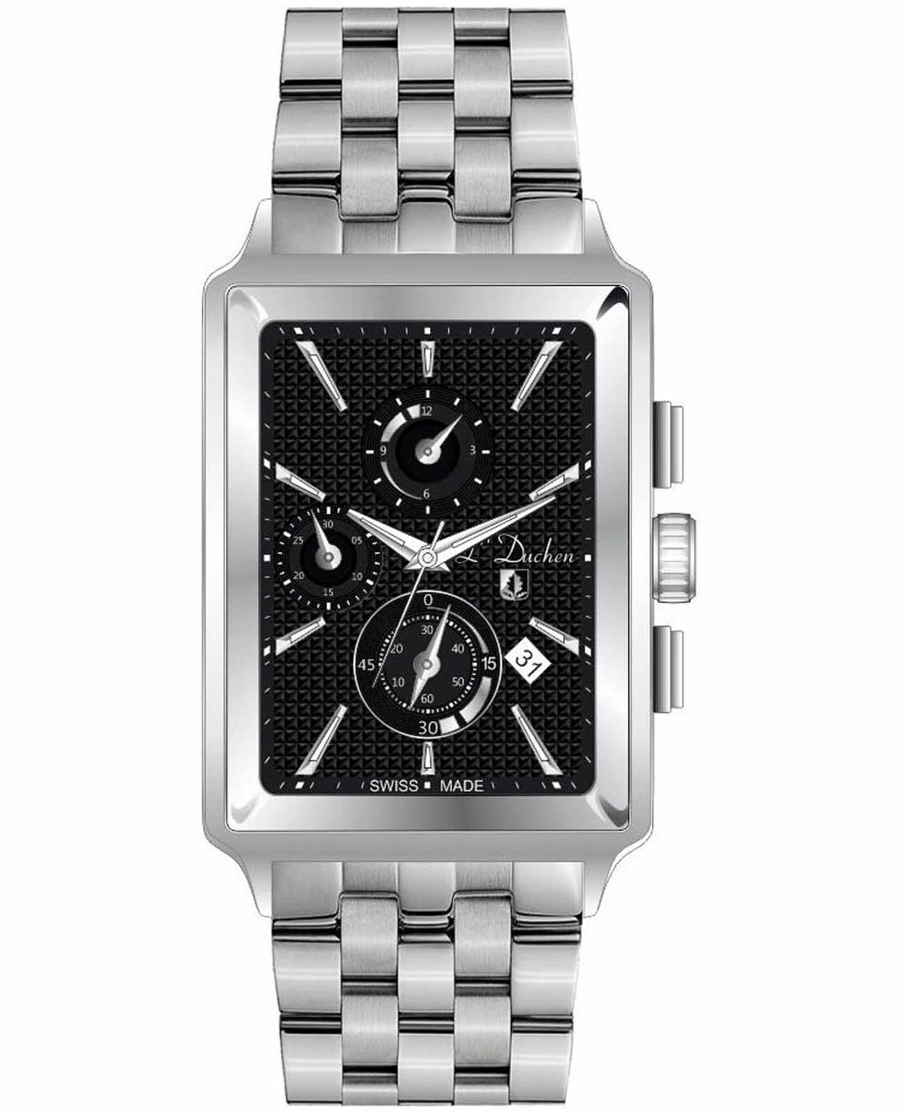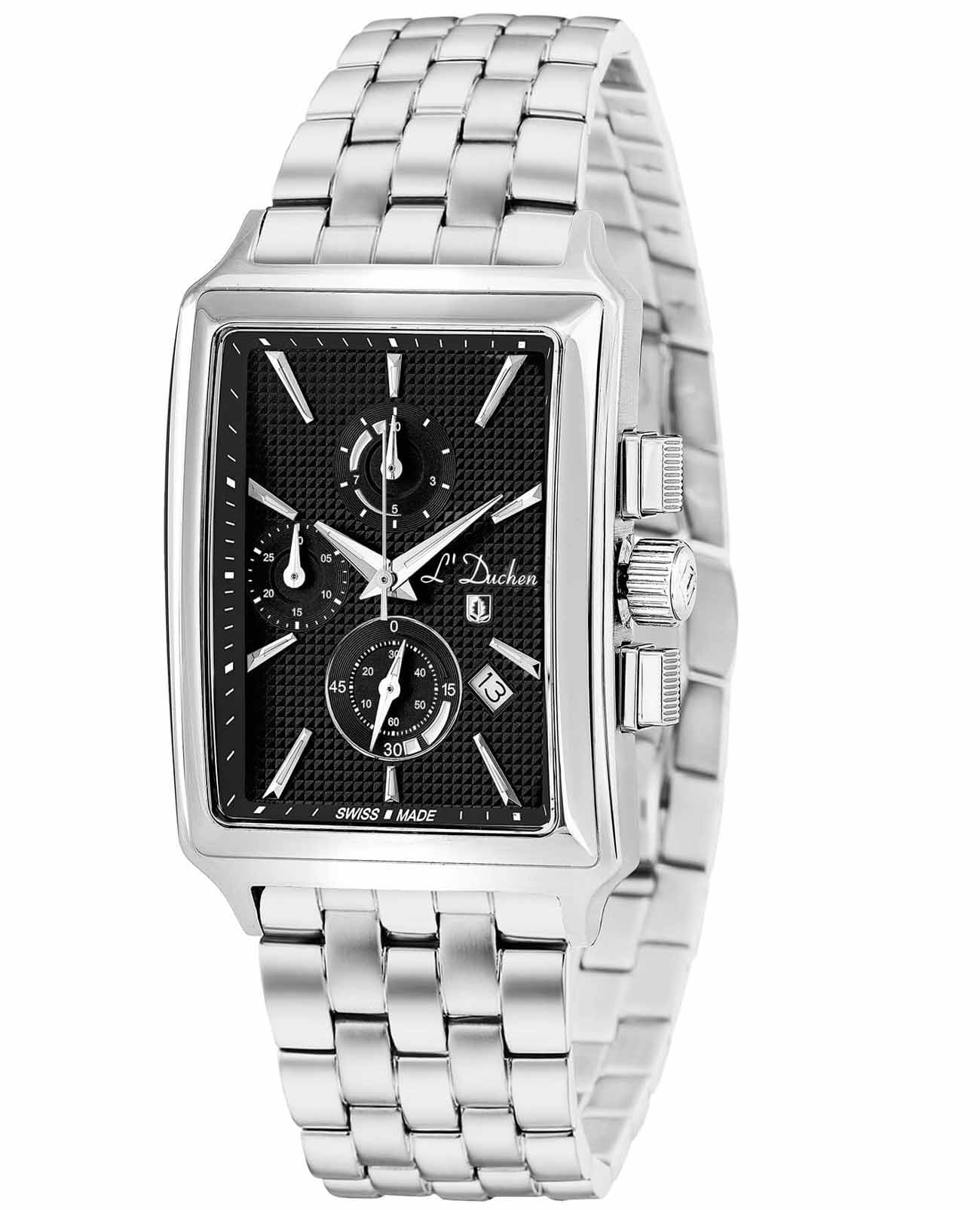 Мужские швейцарские часы- хронографХронографФункция позволяет измерять отрезки времени с особой точностью: часы, минуты, секунды. Верным признаком хронографа является наличие на циферблате 3 дополнительных окошек-счётчиков. L'Duchen Adventure Chrono D 612.10.31, кварцевый механизм с высокой точностью. Сапфировое стеклоСапфировое стеклоПрочный и надёжный материал из кристалла сапфира синтетического происхождения, характеризующийся особой твёрдостью и устойчивостью к царапинам и повреждениям. устойчивое к появлению царапин, обладающее высокой прозрачностью. Корпус часов выполнен из нержавеющей стали. Стрелки с люминесцентным покрытиемЛюминесцентное покрытиеПозволяет считывать показания времени в темноте. Производители наносят на стрелки, часовые индексы, безель или поверхность циферблата светонакопительный состав, дающий холодное свечение.. Окошко даты находится в положении между 4 и 5 часами. Класс водозащиты: 50 метров, позволит защитить корпус от случайных брызг или капель дождя. Стальной браслет на застёжке «бабочка» с кнопкамиЗастёжка "бабочка"Такой вид застёжки дополняется предохранителями, помогающими избежать случайного раскрытия браслета. Обладают изящным исполнением. .