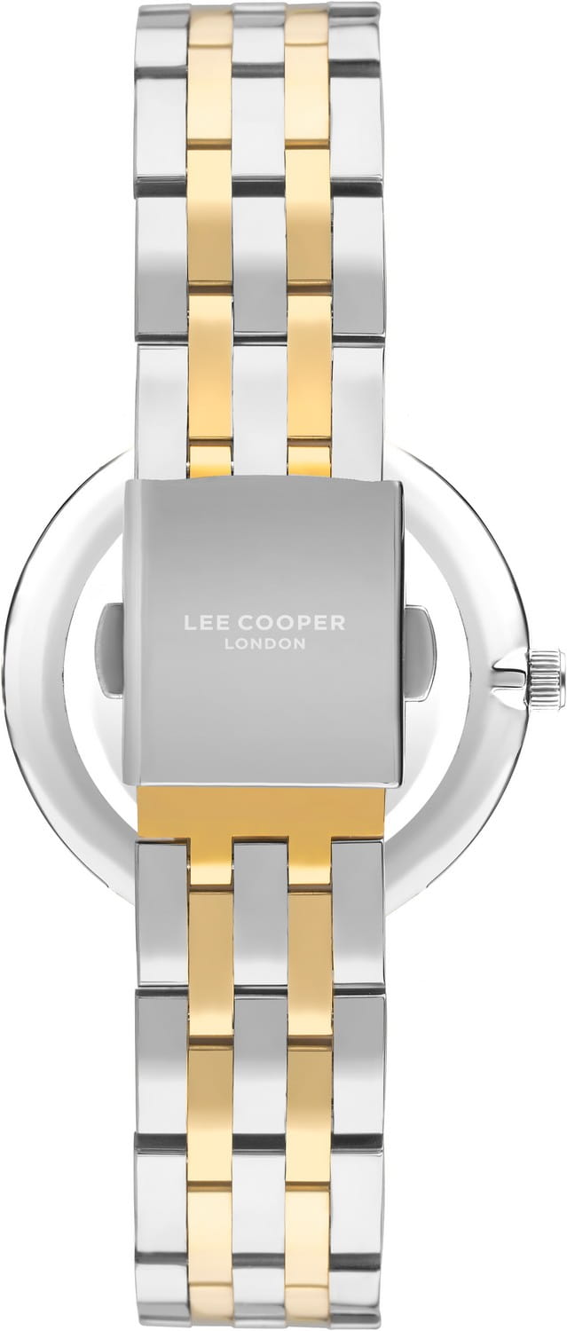 Женские часы Lee Cooper LC07502.230 — это стильное сочетание элегантности и современного дизайна. Круглый корпус диаметром 34 мм выполнен из суперметалла в серебристом цвете, а неподвижный безельБезельВнешний ободок, закрепляющий стекло. В спортивных часах так называется поворотное кольцо с делениями на циферблате, выполняет роль таймера – замеряет отрезки времени на шкале. Неподвижный безель – элемент декора. Однонаправленно вращающийся безель на дайверских часах позволяет фиксировать моменты погружения и выныривания на поверхность. с IP-покрытиемIP-покрытиеМетод ионного напыления. Демонстрирует повышенную устойчивость к истиранию, окислению и химическим веществам. Под воздействием высокого давления и температуры около 1500°C молекулы металла надёжно соединяются с частицами корпуса часов. золотого цвета, придает модели особый блеск. Серый циферблат защищен минеральным стекломМинеральное стеклоМинеральное стекло представляет собой искусственно выращенный минерал кварца. Такое стекло отличается особой устойчивостью к повреждениям и царапинам. Уступает по некоторым качествам сапфировому стеклу., обеспечивающим устойчивость к царапинам. Метки в виде штрихов. Часы оснащены надежным кварцевым механизмом, а металлический браслет с частичным IP-покрытиемIP-покрытиеМетод ионного напыления. Демонстрирует повышенную устойчивость к истиранию, окислению и химическим веществам. Под воздействием высокого давления и температуры около 1500°C молекулы металла надёжно соединяются с частицами корпуса часов. на раскладной застёжкеРаскладная застёжкаТакой тип застёжки используется только на браслетах из металла. Она никогда не раскрывается полностью, происходит разделение на 2 и более частей. Раскладывающая застёжка снизит вероятность потери часов к минимуму. гарантирует комфортную посадку на запястье. Стрелки с люминесцентным покрытиемЛюминесцентное покрытиеПозволяет считывать показания времени в темноте. Производители наносят на стрелки, часовые индексы, безель или поверхность циферблата светонакопительный состав, дающий холодное свечение. позволяют легко считывать время даже в условиях недостаточного освещения. Водозащита 30 метров защищает модель от случайных брызг и дождя. Lee Cooper — отличный выбор для тех, кто ценит утонченность и качество.