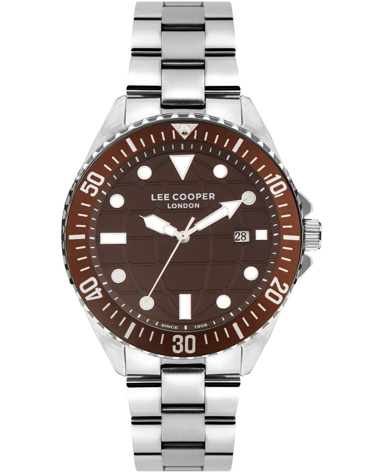 Мужские наручные часы Lee Cooper LC07541.340 — это элегантная модель, сочетающая классический стиль и функциональность. Корпус диаметром 45 мм выполнен из суперметалла, безельБезельВнешний ободок, закрепляющий стекло. В спортивных часах так называется поворотное кольцо с делениями на циферблате, выполняет роль таймера – замеряет отрезки времени на шкале. Неподвижный безель – элемент декора. Однонаправленно вращающийся безель на дайверских часах позволяет фиксировать моменты погружения и выныривания на поверхность. из нержавеющей стали с IP-покрытиемIP-покрытиеМетод ионного напыления. Демонстрирует повышенную устойчивость к истиранию, окислению и химическим веществам. Под воздействием высокого давления и температуры около 1500°C молекулы металла надёжно соединяются с частицами корпуса часов. обеспечивает долговечность и надежность. Коричневый циферблат дополнен индикаторами даты и дня недели, что делает модель удобной для ежедневного использования. Стрелки и метки покрыты люминесцентным покрытиемЛюминесцентное покрытиеПозволяет считывать показания времени в темноте. Производители наносят на стрелки, часовые индексы, безель или поверхность циферблата светонакопительный состав, дающий холодное свечение., обеспечивающим отличную читаемость в темноте. Циферблат защищён минеральным стекломМинеральное стеклоМинеральное стекло представляет собой искусственно выращенный минерал кварца. Такое стекло отличается особой устойчивостью к повреждениям и царапинам. Уступает по некоторым качествам сапфировому стеклу., устойчивым к царапинам. Часы работают на надёжном кварцевом механизме. Браслет из нержавеющей стали с раскладной застёжкойРаскладная застёжкаТакой тип застёжки используется только на браслетах из металла. Она никогда не раскрывается полностью, происходит разделение на 2 и более частей. Раскладывающая застёжка снизит вероятность потери часов к минимуму. гарантирует удобную посадку на запястье. Водозащита 50 метров защищает механизм от влаги, позволяя не беспокоиться о случайных контактах с водой.