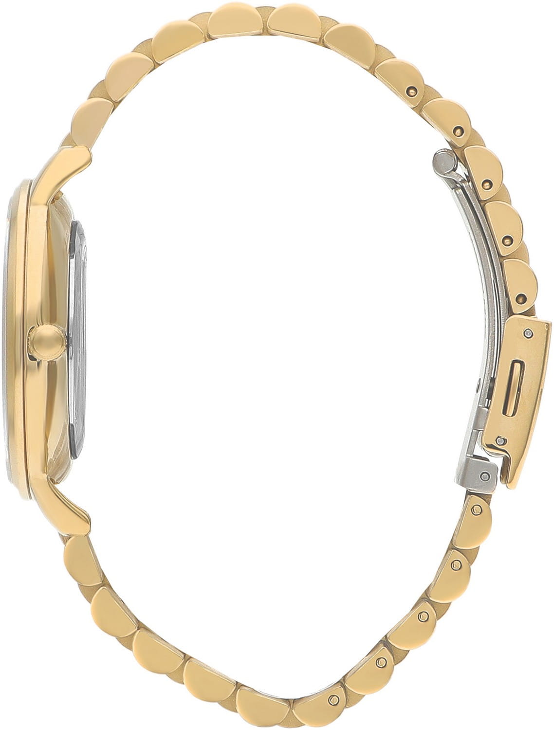 Женские часы Lee Cooper LC07548.130 — это стильное сочетание элегантности и современного дизайна. Круглый корпус диаметром 36 мм выполнен из суперметалла с IP-покрытиемIP-покрытиеМетод ионного напыления. Демонстрирует повышенную устойчивость к истиранию, окислению и химическим веществам. Под воздействием высокого давления и температуры около 1500°C молекулы металла надёжно соединяются с частицами корпуса часов. золотого цвета, что придает модели особый блеск. Серебристый циферблат защищен минеральным стекломМинеральное стеклоМинеральное стекло представляет собой искусственно выращенный минерал кварца. Такое стекло отличается особой устойчивостью к повреждениям и царапинам. Уступает по некоторым качествам сапфировому стеклу., обеспечивающим устойчивость к царапинам и украшен цирконами в виде меток. Часы оснащены надежным кварцевым механизмом, а металлический браслет с IP-покрытиемIP-покрытиеМетод ионного напыления. Демонстрирует повышенную устойчивость к истиранию, окислению и химическим веществам. Под воздействием высокого давления и температуры около 1500°C молекулы металла надёжно соединяются с частицами корпуса часов. на раскладной застёжкеРаскладная застёжкаТакой тип застёжки используется только на браслетах из металла. Она никогда не раскрывается полностью, происходит разделение на 2 и более частей. Раскладывающая застёжка снизит вероятность потери часов к минимуму. гарантирует комфортную посадку на запястье. Водозащита 30 метров защищает модель от случайных брызг и дождя. Lee Cooper — отличный выбор для тех, кто ценит утонченность и качество.