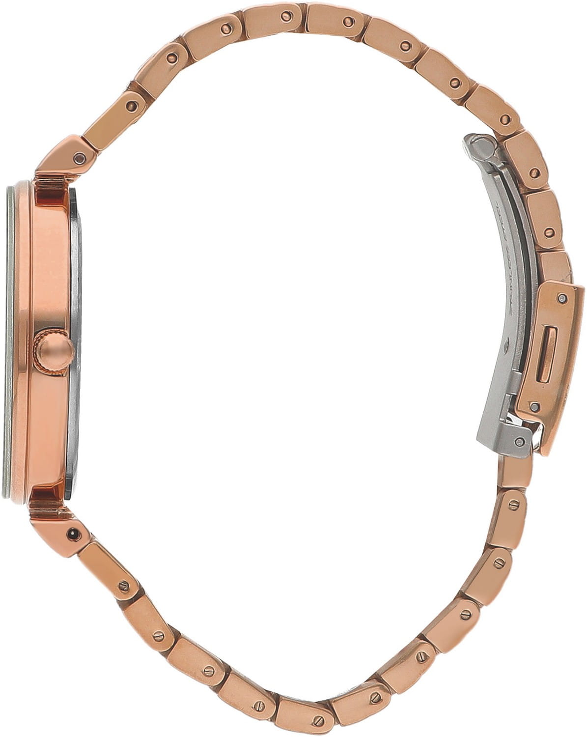 Женские часы Lee Cooper LC07711.410 — это стильное сочетание элегантности и современного дизайна. Круглый корпус диаметром 35 мм выполнен из суперметалла с IP-покрытиемIP-покрытиеМетод ионного напыления. Демонстрирует повышенную устойчивость к истиранию, окислению и химическим веществам. Под воздействием высокого давления и температуры около 1500°C молекулы металла надёжно соединяются с частицами корпуса часов. золотого цвета, придающий модели особый блеск. Изысканный циферблат защищен минеральным стекломМинеральное стеклоМинеральное стекло представляет собой искусственно выращенный минерал кварца. Такое стекло отличается особой устойчивостью к повреждениям и царапинам. Уступает по некоторым качествам сапфировому стеклу., обеспечивающим устойчивость к царапинам. Метки в виде штрихов. Часы оснащены надежным кварцевым механизмом, а стальной браслет с IP-покрытиемIP-покрытиеМетод ионного напыления. Демонстрирует повышенную устойчивость к истиранию, окислению и химическим веществам. Под воздействием высокого давления и температуры около 1500°C молекулы металла надёжно соединяются с частицами корпуса часов. на раскладной застёжкеРаскладная застёжкаТакой тип застёжки используется только на браслетах из металла. Она никогда не раскрывается полностью, происходит разделение на 2 и более частей. Раскладывающая застёжка снизит вероятность потери часов к минимуму. гарантирует комфортную посадку на запястье. Водозащита 30 метров защищает модель от случайных брызг и дождя. Lee Cooper  — отличный выбор для тех, кто ценит утонченность и качество.