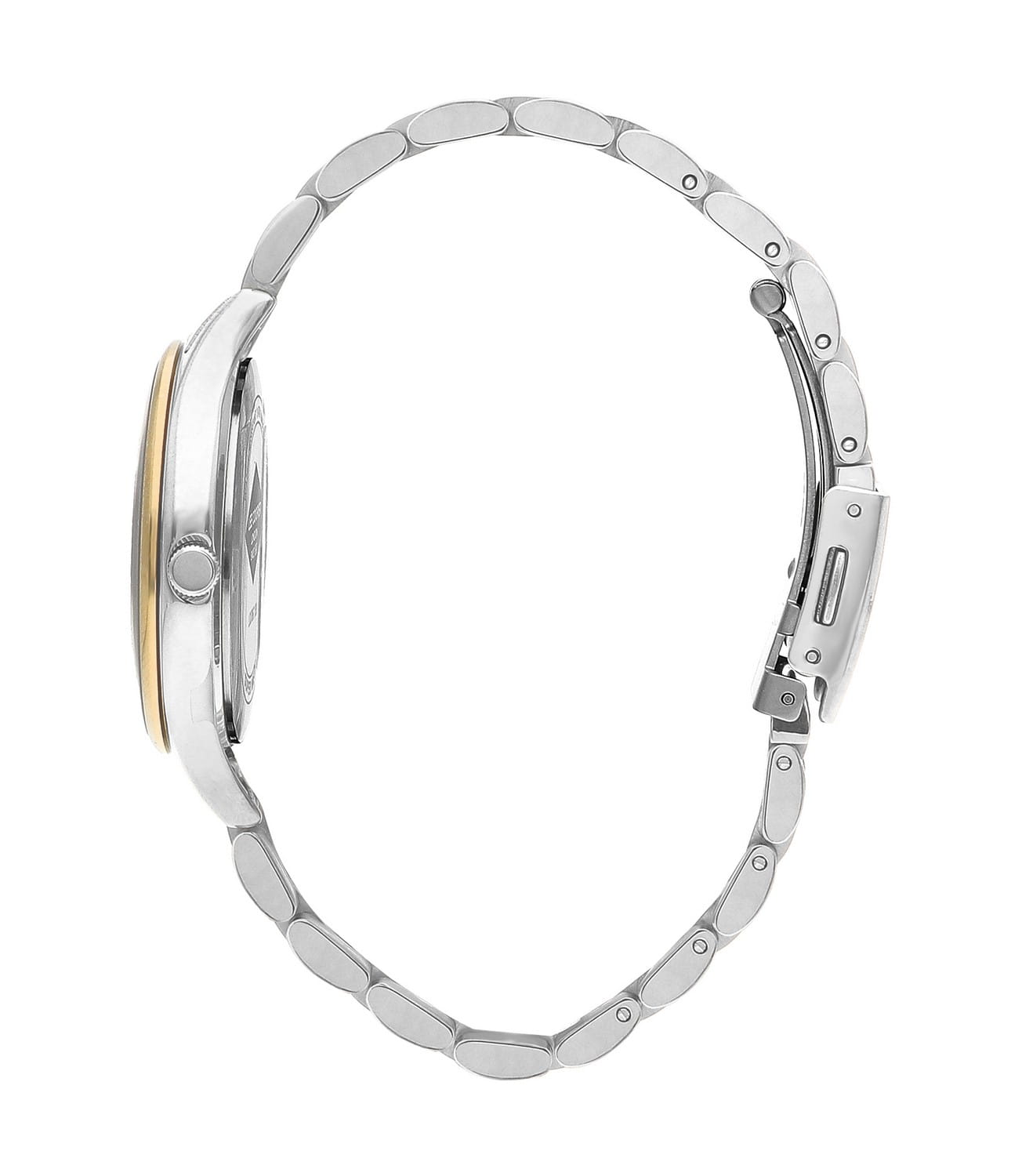 Женские часы Lee Cooper LC07867.230 выполнены в классическом стиле и сочетают строгий дизайн с надёжным механизмом. Модель оснащена кварцевым механизмом, обеспечивающим точность хода и минимальное обслуживание. Корпус круглой формы имеет размер 35 мм, изготовленный из суперметалла, идеально сбалансирован и элегантен. Неповоротный безельБезельВнешний ободок, закрепляющий стекло. В спортивных часах так называется поворотное кольцо с делениями на циферблате, выполняет роль таймера – замеряет отрезки времени на шкале. Неподвижный безель – элемент декора. Однонаправленно вращающийся безель на дайверских часах позволяет фиксировать моменты погружения и выныривания на поверхность. с IP-покрытиемIP-покрытиеМетод ионного напыления. Демонстрирует повышенную устойчивость к истиранию, окислению и химическим веществам. Под воздействием высокого давления и температуры около 1500°C молекулы металла надёжно соединяются с частицами корпуса часов..  Циферблат серебристого цвета дополнен вставками из циркона для чёткого отсчёта времени. Защиту циферблата обеспечивает минеральное стеклоМинеральное стеклоМинеральное стекло представляет собой искусственно выращенный минерал кварца. Такое стекло отличается особой устойчивостью к повреждениям и царапинам. Уступает по некоторым качествам сапфировому стеклу., устойчивое к мелким механическим повреждениям. Браслет из нержавеющей стали с частичным IP-покрытиемIP-покрытиеМетод ионного напыления. Демонстрирует повышенную устойчивость к истиранию, окислению и химическим веществам. Под воздействием высокого давления и температуры около 1500°C молекулы металла надёжно соединяются с частицами корпуса часов. фиксируется на раскладной застёжкеРаскладная застёжкаТакой тип застёжки используется только на браслетах из металла. Она никогда не раскрывается полностью, происходит разделение на 2 и более частей. Раскладывающая застёжка снизит вероятность потери часов к минимуму.. Водозащита 3 АТМ позволяет использовать часы в повседневных условиях без риска повреждения от случайных брызг воды. Это сочетание классического дизайна, прочности материалов и качества исполнения для уверенных в себе женщин.