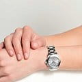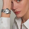 Водонепроницаемость класса 30 метров обеспечит защиту от случайных брызг или капель дождя, сохраняя часы в безопасности в течение всего рабочего дня. Завершает композицию стальной браслет с застёжкой «бабочка»Застёжка "бабочка"Такой вид застёжки дополняется предохранителями, помогающими избежать случайного раскрытия браслета. Обладают изящным исполнением.