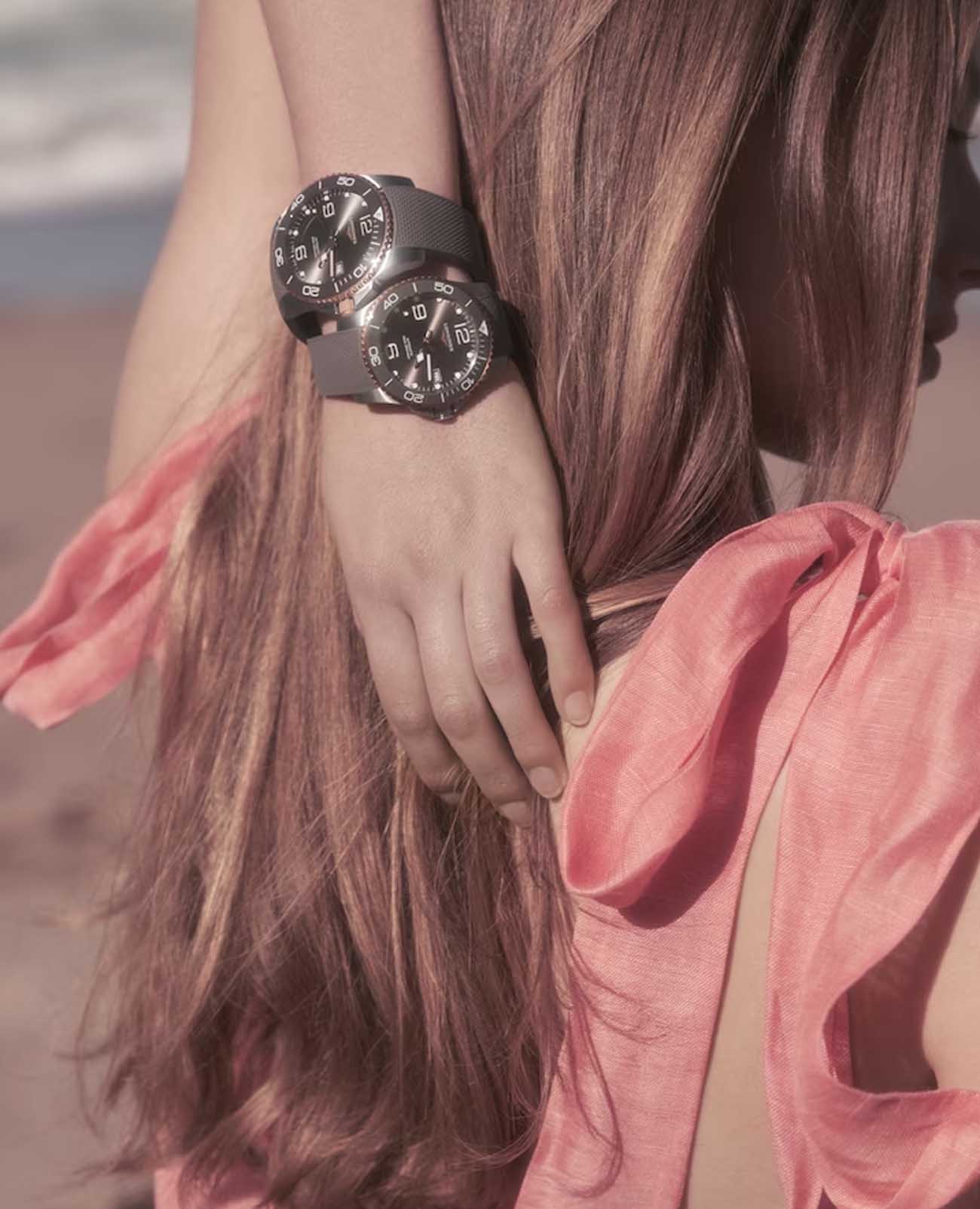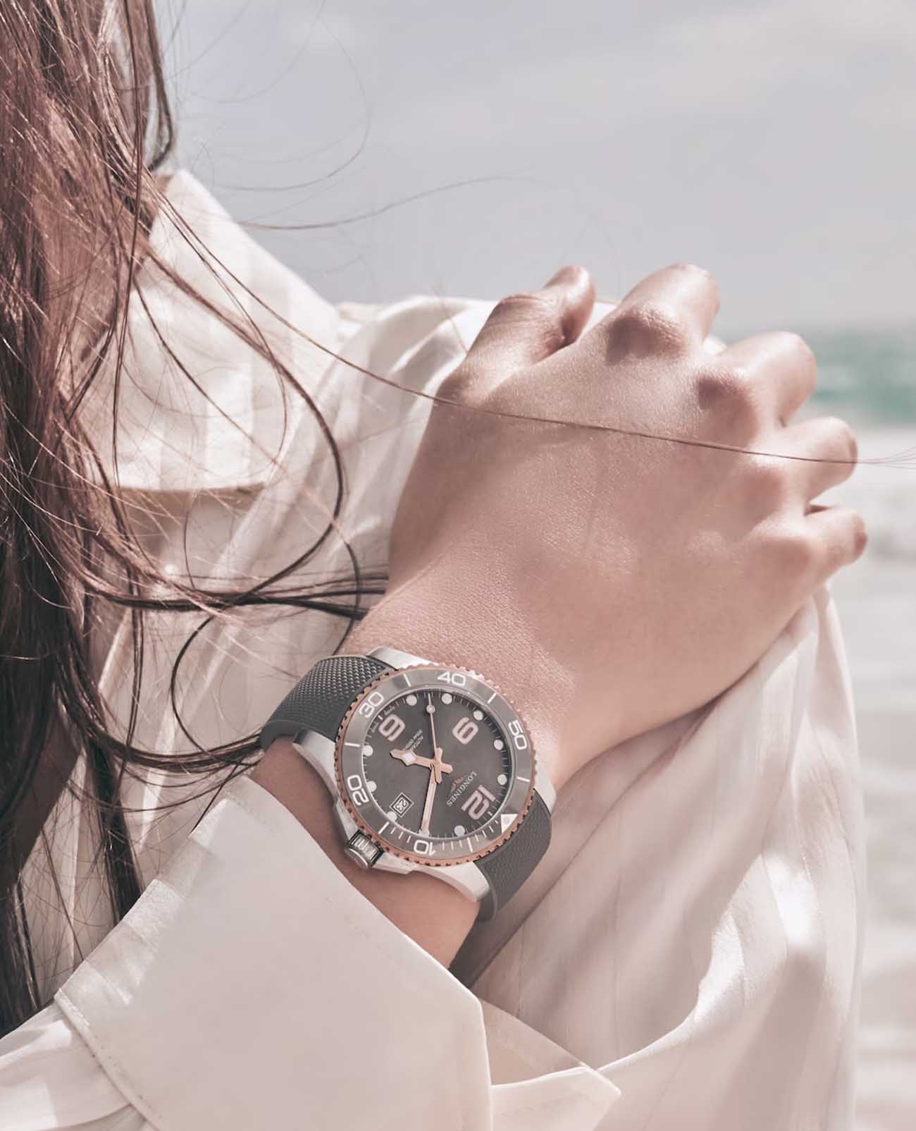 Женские швейцарские механические часы для дайвинга Longines HydroConquest L3.780.3.78.9. Сапфировое стеклоСапфировое стеклоПрочный и надёжный материал из кристалла сапфира синтетического происхождения, характеризующийся особой твёрдостью и устойчивостью к царапинам и повреждениям. с многослойным антибликовым покрытием с обеих сторон, устойчивое к появлению царапин, обладающее высокой прозрачностью. Корпус часов изготовлен из стали. Вращающийся безельБезельВнешний ободок, закрепляющий стекло. В спортивных часах так называется поворотное кольцо с делениями на циферблате, выполняет роль таймера – замеряет отрезки времени на шкале. Неподвижный безель – элемент декора. Однонаправленно вращающийся безель на дайверских часах позволяет фиксировать моменты погружения и выныривания на поверхность. из стали с PVD-покрытиемPVDУльтратонкое покрытие наносится в технике вакуумного напыления, сочетает в себе нитрид титана особой прочности со слоем золота или оксида хрома. Несёт в себе декоративную или защитную функцию. и керамики, защищенный от царапин, никогда не изнашивается и не выцветает. Стрелки и метки с люминесцентным покрытиемЛюминесцентное покрытиеПозволяет считывать показания времени в темноте. Производители наносят на стрелки, часовые индексы, безель или поверхность циферблата светонакопительный состав, дающий холодное свечение.. Окошко даты находится в положении 3 часов. Класс водозащиты: 300 метров, позволит плавать, нырять и заниматься другими водными видами спорта. Каучуковый ремешок на раскладной застёжкеРаскладная застёжкаТакой тип застёжки используется только на браслетах из металла. Она никогда не раскрывается полностью, происходит разделение на 2 и более частей. Раскладывающая застёжка снизит вероятность потери часов к минимуму..