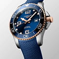 Мужские швейцарские механические часы для дайвинга Longines Hydroconquest L3.782.3.98.9. Сапфировое стеклоСапфировое стеклоПрочный и надёжный материал из кристалла сапфира синтетического происхождения, характеризующийся особой твёрдостью и устойчивостью к царапинам и повреждениям. с многослойным антибликовым покрытием с обеих сторон, устойчивое к появлению царапин, обладающее высокой прозрачностью. Корпус часов изготовлен из стали. Вращающийся безельБезельВнешний ободок, закрепляющий стекло. В спортивных часах так называется поворотное кольцо с делениями на циферблате, выполняет роль таймера – замеряет отрезки времени на шкале. Неподвижный безель – элемент декора. Однонаправленно вращающийся безель на дайверских часах позволяет фиксировать моменты погружения и выныривания на поверхность. из стали с PVD-покрытиемPVDУльтратонкое покрытие наносится в технике вакуумного напыления, сочетает в себе нитрид титана особой прочности со слоем золота или оксида хрома. Несёт в себе декоративную или защитную функцию. и керамики, защищенный от царапин, никогда не изнашивается и не выцветает. Стрелки и метки с люминесцентным покрытиемЛюминесцентное покрытиеПозволяет считывать показания времени в темноте. Производители наносят на стрелки, часовые индексы, безель или поверхность циферблата светонакопительный состав, дающий холодное свечение.. Окошко даты находится в положении 3 часов. Класс водозащиты: 300 метров, позволит плавать, нырять и заниматься другими водными видами спорта. Каучковый ремешок на раскладной застёжкеРаскладная застёжкаТакой тип застёжки используется только на браслетах из металла. Она никогда не раскрывается полностью, происходит разделение на 2 и более частей. Раскладывающая застёжка снизит вероятность потери часов к минимуму..