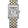 Изысканные женские часы LONGINES Mini DolceVita L5.200.5.78.7 — это воплощение спокойной роскоши и вечного стиля. Модель выполнена в прямоугольном корпусе размером 21.50 x 29.00 мм, изготовленном из нержавеющей стали и инкрустированы 38 бриллиантов Top Wesselton IF-VVS общим весом 0,456 карата. Циферблат серебристого цвета оформлен в технике flinqué , придающей ему особую глубину и переливы на свету. Часовая шкала отмечена нарисованными римскими цифрами , а для точности хода предусмотрены вороненые стальные стрелки и малая секундная стрелка в положении «6 часов». Все элементы циферблата подчеркивают элегантность и классический вкус модели. Защиту циферблата обеспечивает прочное сапфировое стеклоСапфировое стеклоПрочный и надёжный материал из кристалла сапфира синтетического происхождения, характеризующийся особой твёрдостью и устойчивостью к царапинам и повреждениям. с многослойным антибликовым покрытиемАнтибликовое покрытиеСлой оксида металла в 0,13-0,3 микрон, благодаря которому стекло часов не бликует и не отражает свет. Антибликовое покрытие уменьшает отражение света в 10 раз, обеспечивая отличную читаемость показателей циферблата. с обеих сторон, гарантирующее четкость показаний в любых условиях освещения. Механизм L178 (RENATA 379) — кварцевый калибр, который обеспечивает высокую точность и простоту использования. Также реализована функция EOLEOLПредставляет собой систему, уведомляющую владельца часов о необходимости замены элемента питания. За 2 недели до полного разряда батарейки секундная стрелка перестаёт ходить чётко и начинает перепрыгивать на 3-4 деления. (End of Life) — сигнал о замене батарейки. Корпус водонепроницаем до WR30 (3 АТМ) , что позволяет носить часы в повседневных условиях без опасений за сохранность механизма. Толщина составляет всего 6.75 мм , а общий вес — 65 г , что делает модель легкой и удобной для ежедневного ношения. Браслет выполнен из нержавеющей стали и желтого 18-каратного золото18-каратное золотоОбозначение по каратной системе пробирования, оно показывает, сколько драгоценного металла содержится в изделии. 18 карат - в составе 75% чистого золота, соответствует 750 пробе.