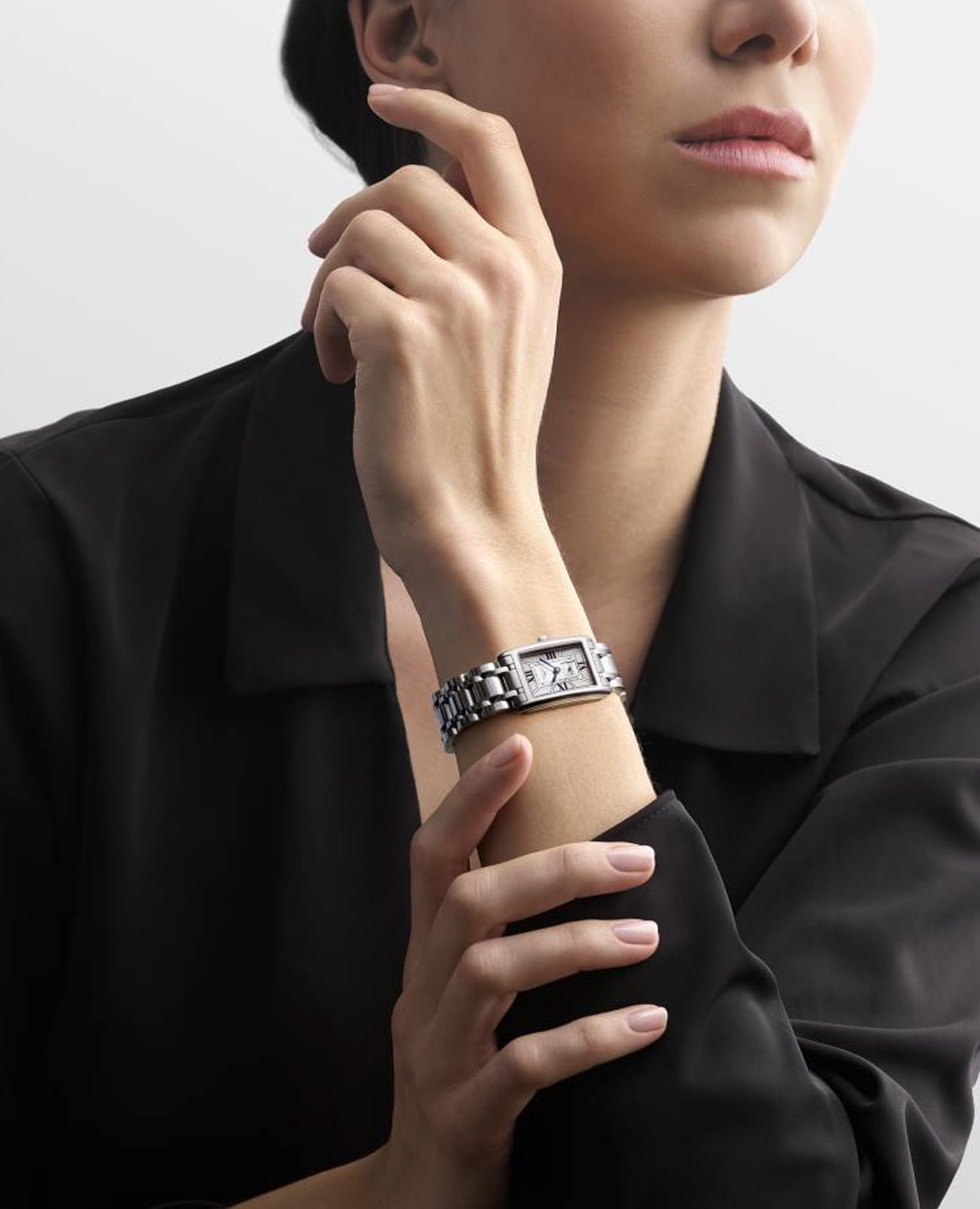 Женские швейцарские часы Longines DolceVita L52554756, кварцевый механизм с высокой точностью. Сапфировое стеклоСапфировое стеклоПрочный и надёжный материал из кристалла сапфира синтетического происхождения, характеризующийся особой твёрдостью и устойчивостью к царапинам и повреждениям. устойчивое к появлению царапин, обладающее высокой прозрачностью. Корпус часов изготовлен из нержавеющей стали. Циферблат украшен римскими цифрами. Малая секундная стрелка в положении 6 часов. Класс водозащиты: 30 метров, позволит защитить корпус от случайных брызг или капель дождя. Браслет из нержавеющей стали на застёжке «бабочка» с кнопкамиЗастёжка "бабочка"Такой вид застёжки дополняется предохранителями, помогающими избежать случайного раскрытия браслета. Обладают изящным исполнением. .