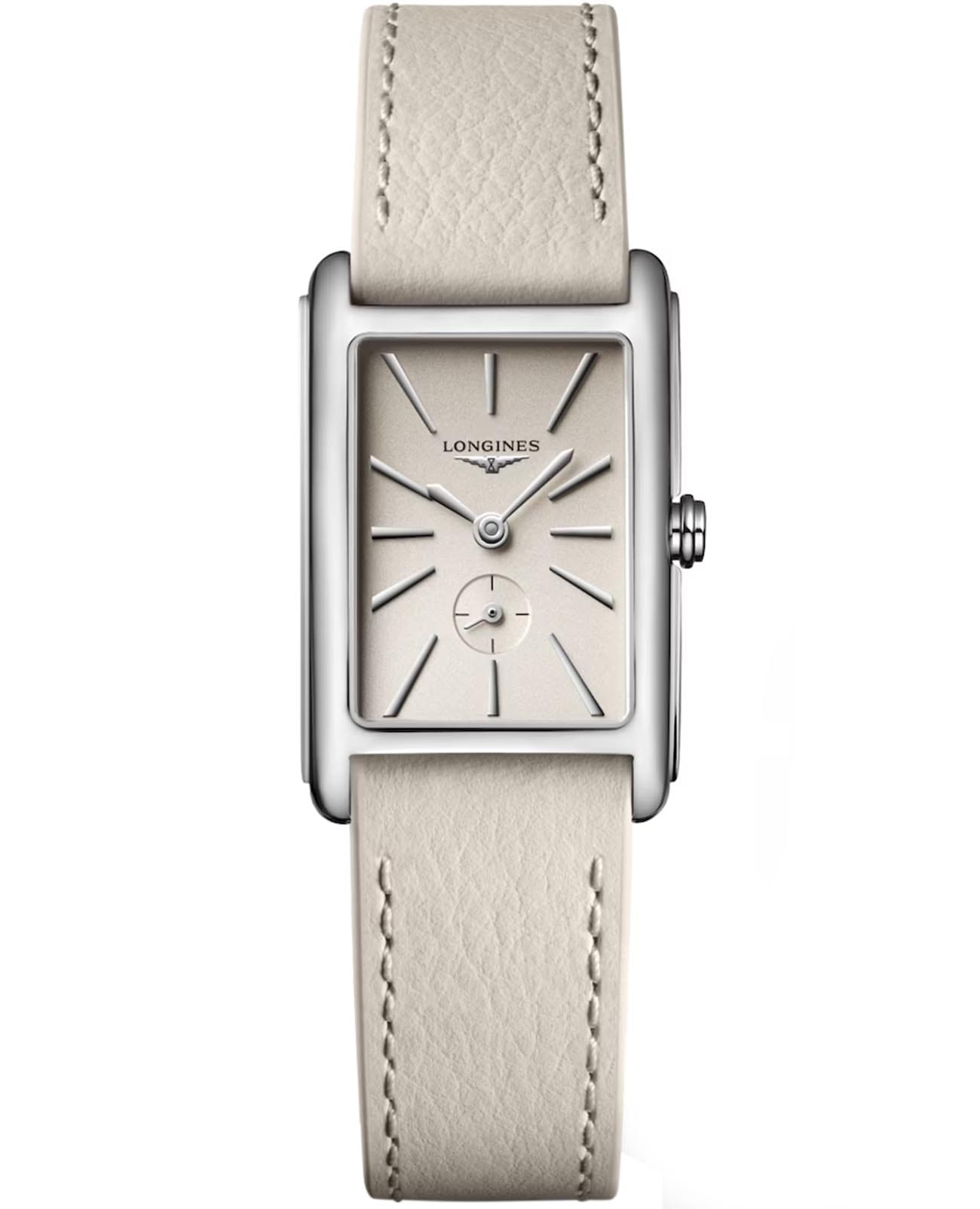 Женские швейцарские часы Longines DolceVita L5.255.4.79.2, кварцевый механизм с высокой точностью. Сапфировое стеклоСапфировое стеклоПрочный и надёжный материал из кристалла сапфира синтетического происхождения, характеризующийся особой твёрдостью и устойчивостью к царапинам и повреждениям. устойчивое к появлению царапин, обладающее высокой прозрачностью. Корпус часов изготовлен из нержавеющей стали. Метки в виде римских цифр. Малая секундная стрелка в положении 6 часов. Класс водозащиты: 30 метров, позволит защитить корпус от случайных брызг или капель дождя. Ремешок из кожи на стандартной застежке.