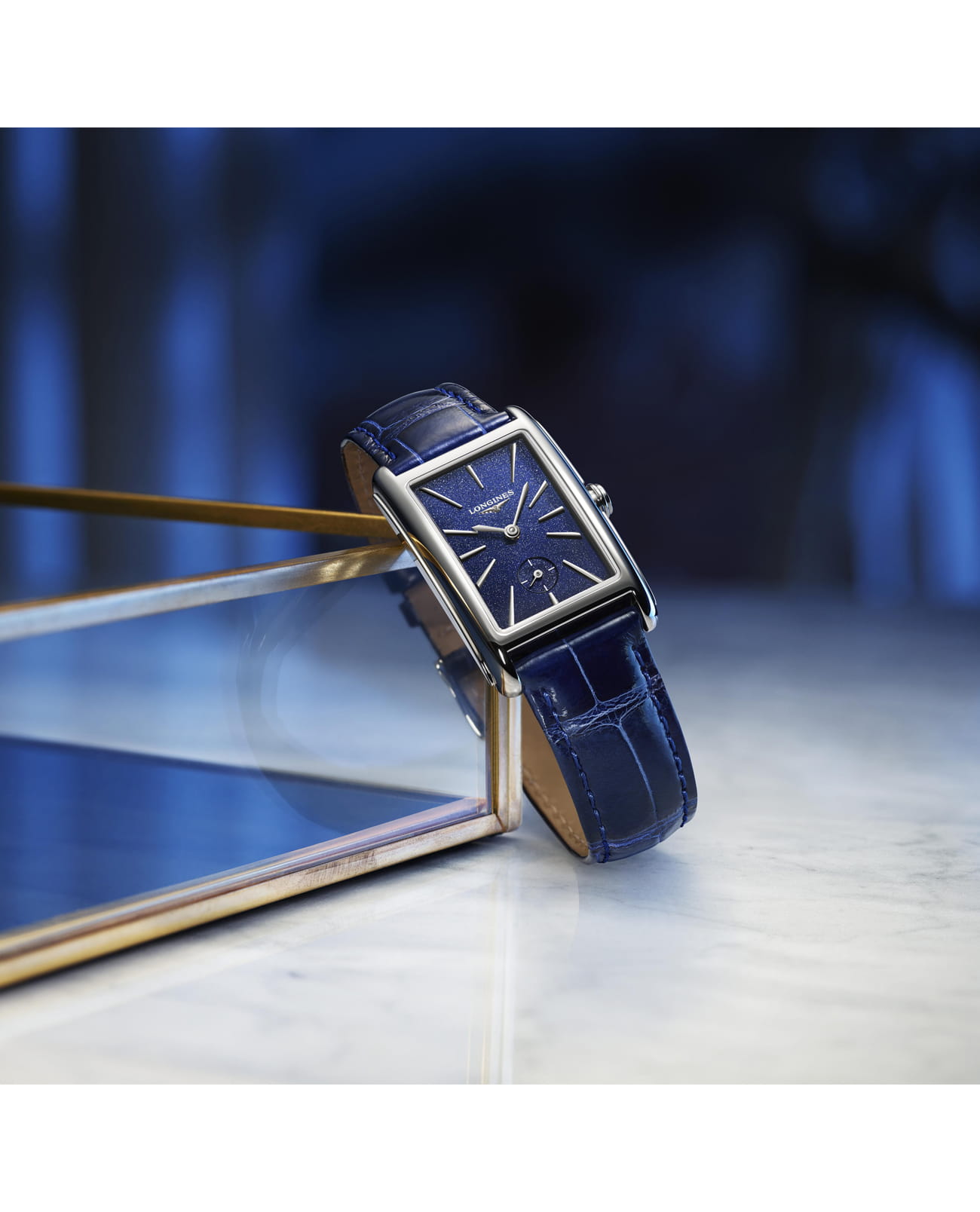 Женские швейцарские часы Longines DolceVita L5.512.4.93.2 – это не просто аксессуар, а настоящее произведение искусства, воплощающее утончённый вкус и элегантность своей обладательницы. Эти изысканные часы с синим циферблатом привлекают внимание своей красотой и изяществом. Каждая деталь, от посеребрённых полированных стрелок до элегантного дизайна корпуса, говорит о высоком статусе и безупречном вкусе.