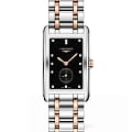 Женские швейцарские часы Longines DolceVita L5.755.5.57.7, кварцевый механизм с высокой точностью. Сапфировое стеклоСапфировое стеклоПрочный и надёжный материал из кристалла сапфира синтетического происхождения, характеризующийся особой твёрдостью и устойчивостью к царапинам и повреждениям. устойчивое к появлению царапин, обладающее высокой прозрачностью. Корпус часов изготовлен из стали. Циферблат украшают 13 бриллиантов 0,06 карат. Малая секундная стрелка в положении 6 часов. Класс водозащиты: 30 метров, позволит защитить корпус от случайных брызг или капель дождя. Браслет из нержавеющей стали и с 18-каратным золотом18-каратное золотоОбозначение по каратной системе пробирования, оно показывает, сколько драгоценного металла содержится в изделии. 18 карат - в составе 75% чистого золота, соответствует 750 пробе.