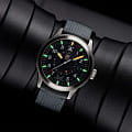 Эти часы Luminox x VOLITION AMERICA Flight Force Pilot Watch XA.9522.VOL это новейшая модель, вдохновленная шлемами, которые носят военнослужащие ВВС США. Они оснащены 42-миллиметровым черным циферблатом, защищенным сапфировым стекломСапфировое стеклоПрочный и надёжный материал из кристалла сапфира синтетического происхождения, характеризующийся особой твёрдостью и устойчивостью к царапинам и повреждениям. с антибликовым покрытиемАнтибликовое покрытиеСлой оксида металла в 0,13-0,3 микрон, благодаря которому стекло часов не бликует и не отражает свет. Антибликовое покрытие уменьшает отражение света в 10 раз, обеспечивая отличную читаемость показателей циферблата., и стильным серым тканевым ремешком с фирменной классической застежкой застежкой Luminox. Часы обладают функцией GMTGMTОтображение времени второго часового пояса.Такая функция особенно актуальна для путешественников и бизнесменов,которые общаются с людьми из разных стран,теперь вы всегда будете знать,какой час у вашего партнёра или близкого человека., что позволяет отслеживать время в двух часовых поясах одновременно, делая их идеальными спутниками для путешественников по всему миру. Дизайн с характерным треугольником и двумя точками под отметкой 12 часов, что обеспечивает быструю ориентацию и легкость считывания времени. Механизм на базе швейцарского кварца RONDA 515.24H обеспечивает работу часов до 50 месяцев без замены батареи, а постоянное свечение циферблата сохраняется до 25 лет благодаря LLTLLTLLT — это автономный механизм подсветки, основанный на использовании микроскопических газонаполненных элементов. Специальные герметичные капсулы из боросиликатного стекла, интегрированные в циферблат, генерируют свечение без необходимости подключения к внешним источникам энергии. Для их работы не требуется ни дополнительный свет, ни механическое воздействие (например, нажатие кнопки). Свечение возникает благодаря химическому процессу: реакция между тритием, заключенным в капсулах, и люминофорным покрытием создает стабильное автономное освещение. Технология обеспечивает энергетическую независимость и долговечность подсветки.-подсветке. Корпус выполнен из нержавеющей стали 316L и выдерживает погружение на глубину до 100 метров. Завинчивающаяся заводная головка и прозрачная задняя крышка из нержавеющей стали добавляют прочности и эстетической привлекательности.