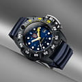Часы Luminox XS.1553 представляют собой сочетание швейцарского качества и современных технологий, создавая надежный аксессуар для любителей активного образа жизни и дайвинга. В их основе лежит кварцевый механизм, обеспечивающий точность и долговечность. Корпус часов выполнен из прочного пластика, усиленного прессованным карбономКарбонОт «carbon», «carbone» - углерод, углепластик - полимерный композиционный материал из переплетённых под определенным углом между собой нитей углеродного волокна, применяется для изготовления лёгких, но прочных деталей. В часах часто используют для украшения циферблатов и ремешков. Так же карбон используется в изготовлении корпусов. Такие корпуса обладают антикоррозионным свойством, не поддаются электромагнитному излучению, обладают повышенной прочностью и противоударностью., что делает их легкими и устойчивыми к повреждениям. Эти часы обладают синим циферблатом и надежным каучуковым ремешком такого же цвета с классической застежкой, обеспечивающим комфортное ношение в любых условиях. Водозащита до 300 метров позволяет использовать часы при погружениях на значительные глубины, а LLTLLTLLT — это автономный механизм подсветки, основанный на использовании микроскопических газонаполненных элементов. Специальные герметичные капсулы из боросиликатного стекла, интегрированные в циферблат, генерируют свечение без необходимости подключения к внешним источникам энергии. Для их работы не требуется ни дополнительный свет, ни механическое воздействие (например, нажатие кнопки). Свечение возникает благодаря химическому процессу: реакция между тритием, заключенным в капсулах, и люминофорным покрытием создает стабильное автономное освещение. Технология обеспечивает энергетическую независимость и долговечность подсветки.-подсветка гарантирует отличную видимость в темноте. Сапфировое стеклоСапфировое стеклоПрочный и надёжный материал из кристалла сапфира синтетического происхождения, характеризующийся особой твёрдостью и устойчивостью к царапинам и повреждениям. с антибликовым покрытиемАнтибликовое покрытиеСлой оксида металла в 0,13-0,3 микрон, благодаря которому стекло часов не бликует и не отражает свет. Антибликовое покрытие уменьшает отражение света в 10 раз, обеспечивая отличную читаемость показателей циферблата. защищает циферблат от царапин и уменьшает отражения, обеспечивая легкость считывания информации. Функция календаря с указанием числа добавляет практичности, а 12- и 24-часовой формат времени позволяет выбрать наиболее удобное отображение. Завинчивающаяся заводная головка с защитой и стальная задняя крышка обеспечивают дополнительную герметичность и прочность конструкции. Вращающийся в одном направлении безельБезельВнешний ободок, закрепляющий стекло. В спортивных часах так называется поворотное кольцо с делениями на циферблате, выполняет роль таймера – замеряет отрезки времени на шкале. Неподвижный безель – элемент декора. Однонаправленно вращающийся безель на дайверских часах позволяет фиксировать моменты погружения и выныривания на поверхность. помогает отслеживать время погружения, что делает эти часы идеальными для дайверов. Габариты часов составляют 45 мм в диаметре и 15 мм в толщину, при весе всего 91 г, что делает их удобными для повседневного использования и при з