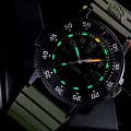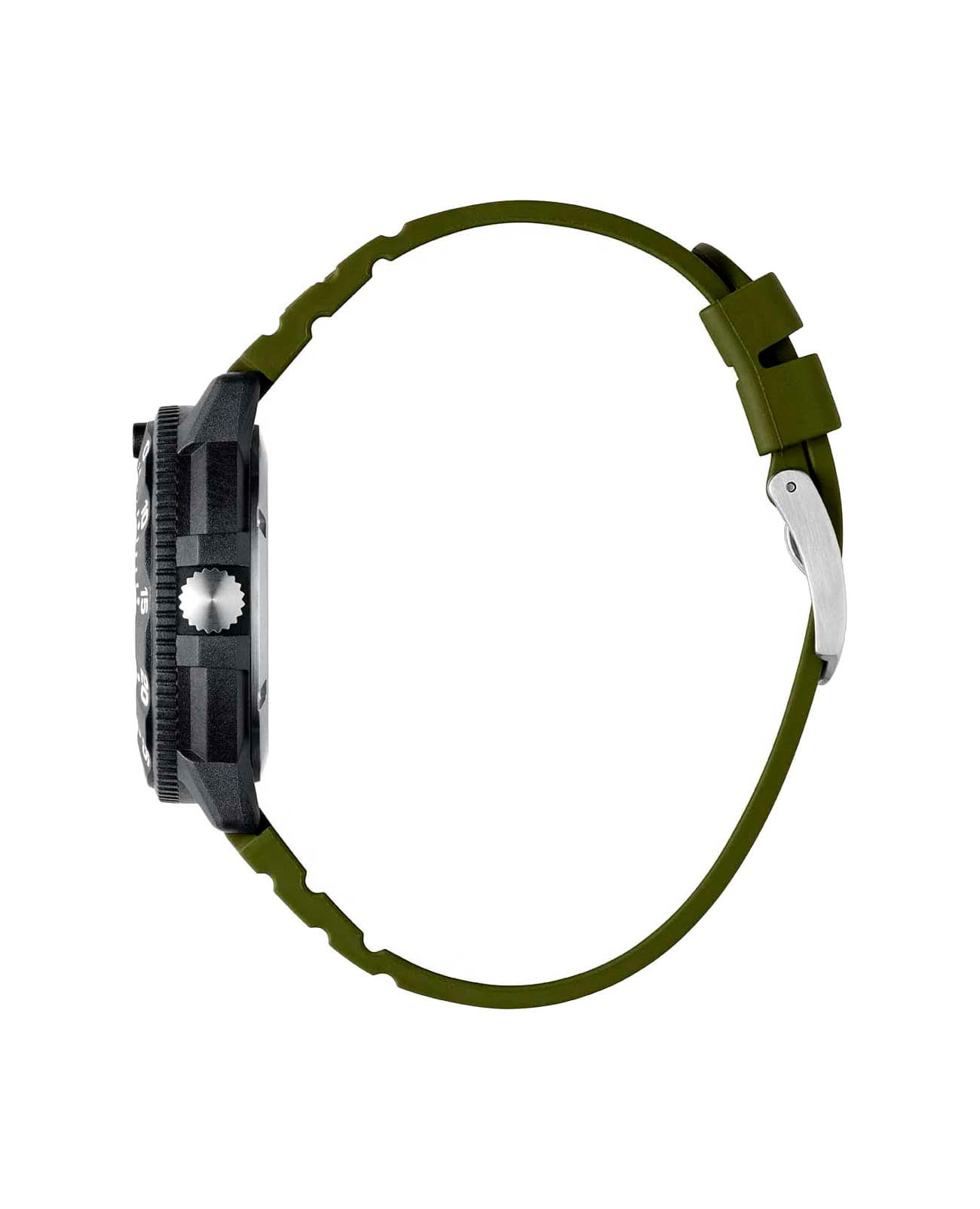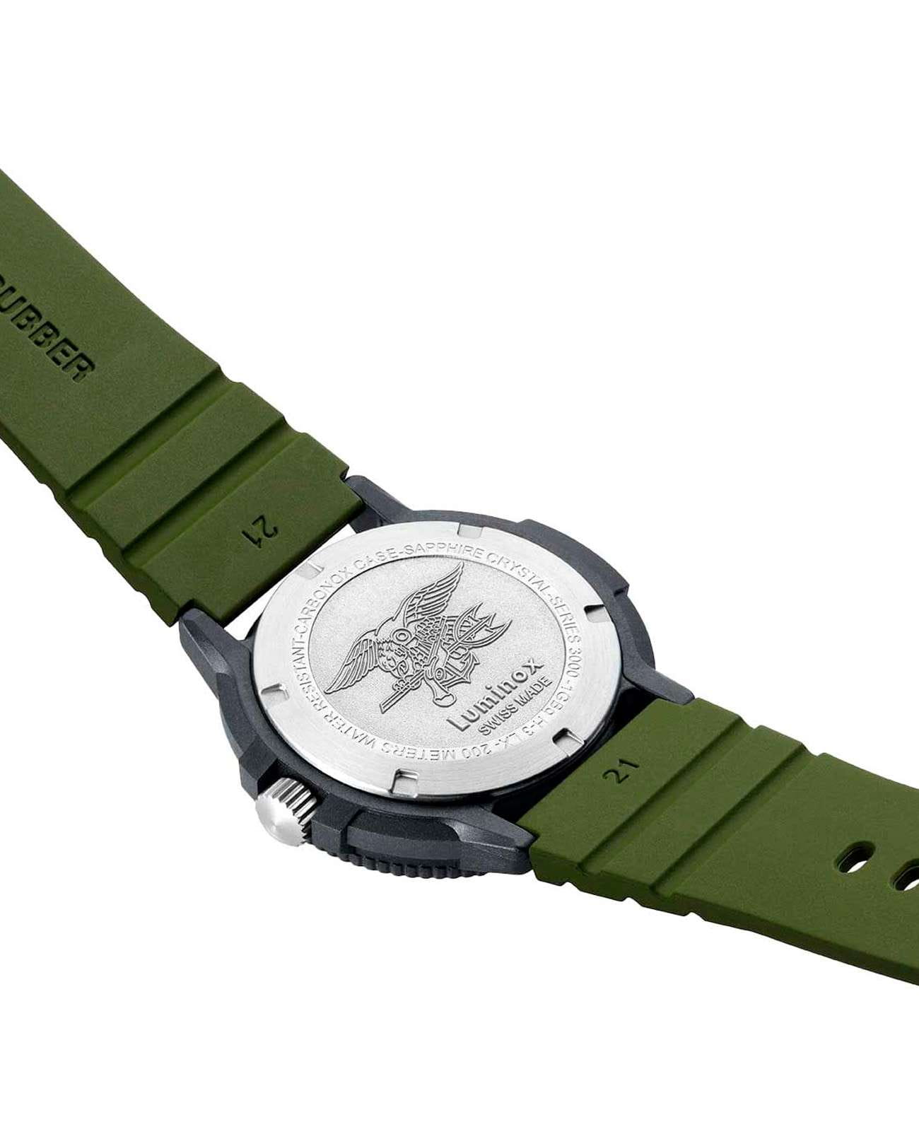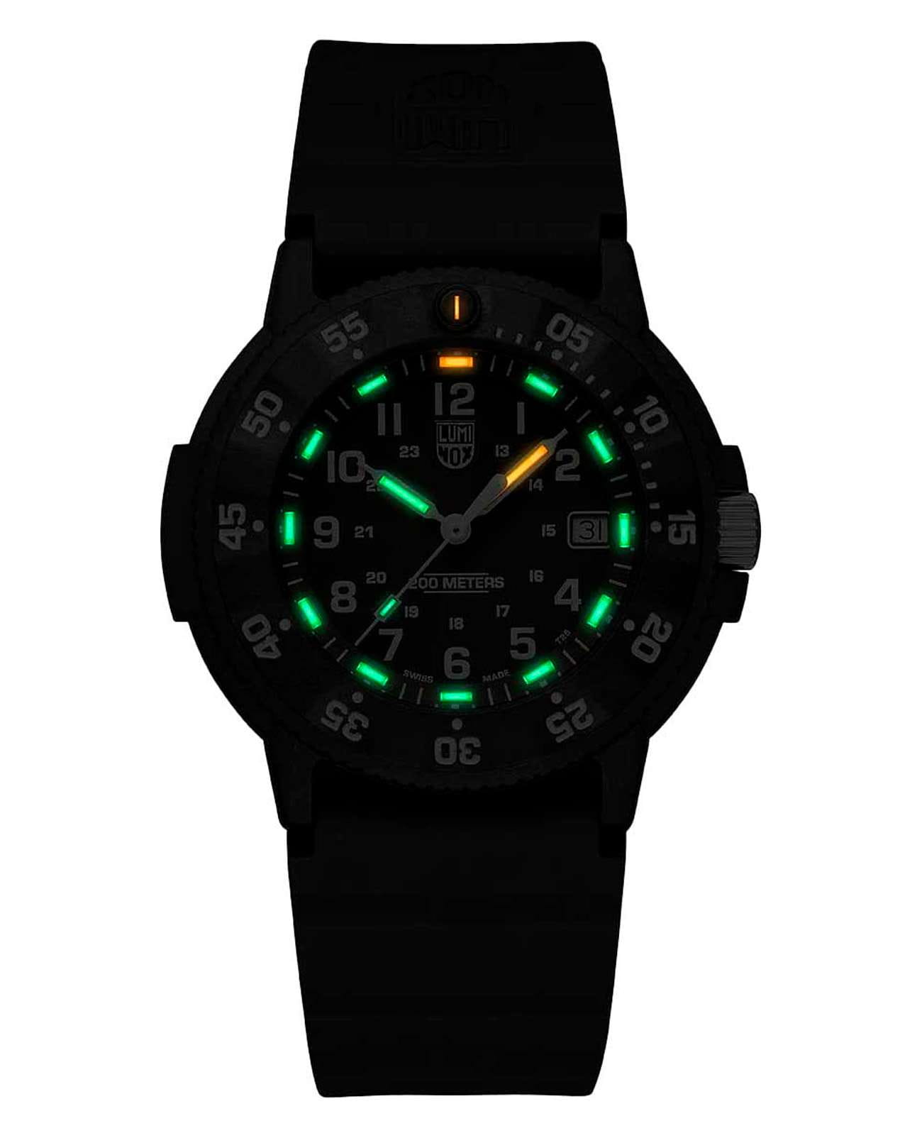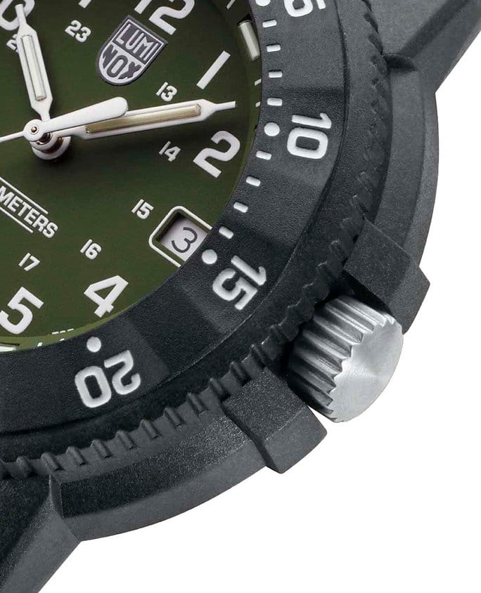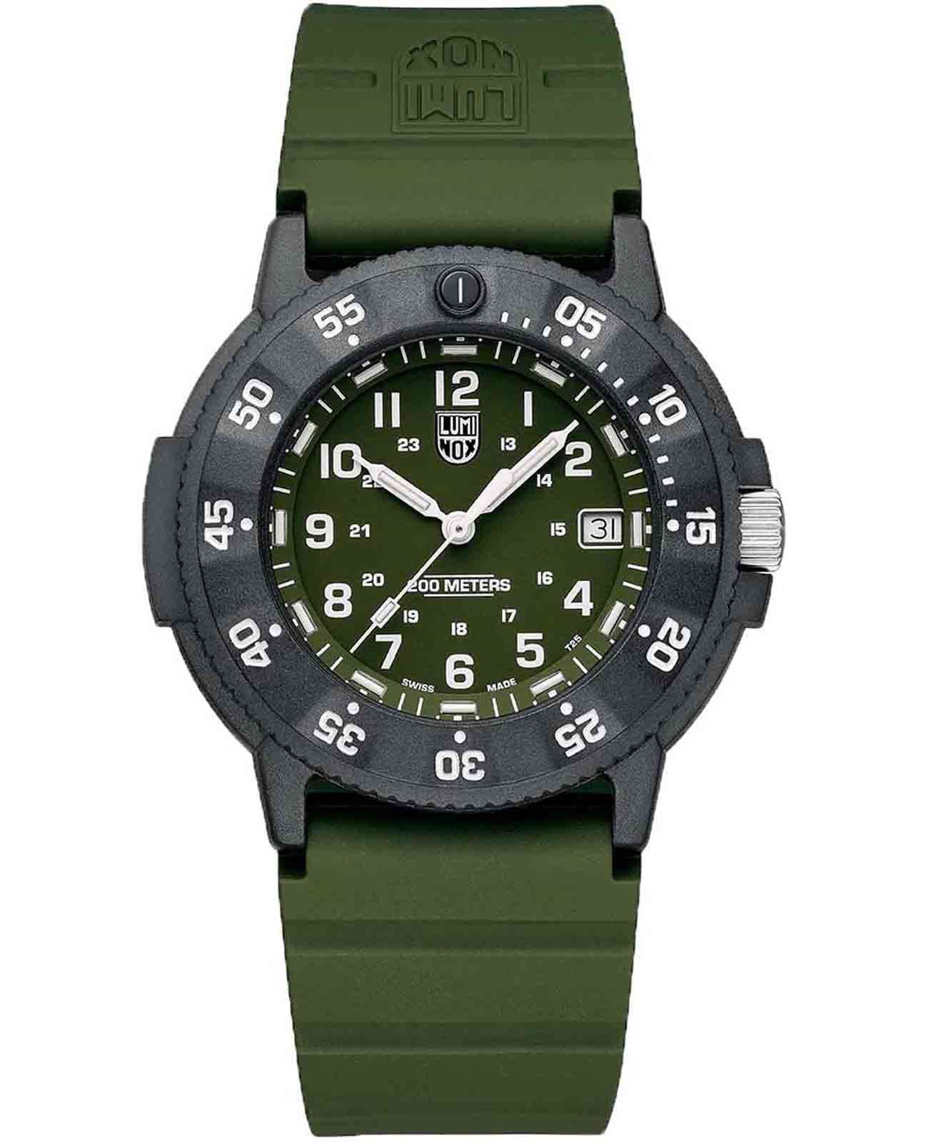 Мужские наручные часы Luminox XS.3013.EVO.S из коллекции Original Navy SEAL сочетают в себе спортивный дизайн и надежность швейцарского качества. Модель обладает круглым корпусом диаметром 43 мм, изготовленным из карбонаКарбонОт «carbon», «carbone» - углерод, углепластик - полимерный композиционный материал из переплетённых под определенным углом между собой нитей углеродного волокна, применяется для изготовления лёгких, но прочных деталей. В часах часто используют для украшения циферблатов и ремешков. Так же карбон используется в изготовлении корпусов. Такие корпуса обладают антикоррозионным свойством, не поддаются электромагнитному излучению, обладают повышенной прочностью и противоударностью. (CARBONOX™), что обеспечивает высокую устойчивость к внешним воздействиям при сохранении легкости . Циферблат зеленого цвета украшен контрастными метками и стрелками с , гарантирующим постоянную видимость времени даже в условиях низкой освещенности благодаря системе LLTLLTLLT — это автономный механизм подсветки, основанный на использовании микроскопических газонаполненных элементов. Специальные герметичные капсулы из боросиликатного стекла, интегрированные в циферблат, генерируют свечение без необходимости подключения к внешним источникам энергии. Для их работы не требуется ни дополнительный свет, ни механическое воздействие (например, нажатие кнопки). Свечение возникает благодаря химическому процессу: реакция между тритием, заключенным в капсулах, и люминофорным покрытием создает стабильное автономное освещение. Технология обеспечивает энергетическую независимость и долговечность подсветки. (микрогазовые огни) . Часы оснащены кварцевым механизмом швейцарского производства, обеспечивающим точность хода ±15 секунд в месяц . Защиту циферблата обеспечивает прочное сапфировое стеклоСапфировое стеклоПрочный и надёжный материал из кристалла сапфира синтетического происхождения, характеризующийся особой твёрдостью и устойчивостью к царапинам и повреждениям. с антибликовым покрытиемАнтибликовое покрытиеСлой оксида металла в 0,13-0,3 микрон, благодаря которому стекло часов не бликует и не отражает свет. Антибликовое покрытие уменьшает отражение света в 10 раз, обеспечивая отличную читаемость показателей циферблата., устойчивое к царапинам и механическим повреждениям . Водонепроницаемость модели достигает 20 атмосфер (200 метров), что делает их подходящими для плавания и активного отдыха на воде, включая дайвинг . Модель также оснащена безелемБезельВнешний ободок, закрепляющий стекло. В спортивных часах так называется поворотное кольцо с делениями на циферблате, выполняет роль таймера – замеряет отрезки времени на шкале. Неподвижный безель – элемент декора. Однонаправленно вращающийся безель на дайверских часах позволяет фиксировать моменты погружения и выныривания на поверхность. с односторонним вращением, что добавляет функциональности при использовании в водных условиях . Ремешок выполнен из зеленого каучука, что обеспечивает комфортное ношение в течение дня и удобство в уходе . Дополнительно часы имеют окно даты в положении «3 часа», что делает их практичными для повседневного использования . Сочетание современных технологий, надежности и стильного дизайна делает Luminox XS.3013.EVO.S идеальным выбором для ценителей качественных аксессу