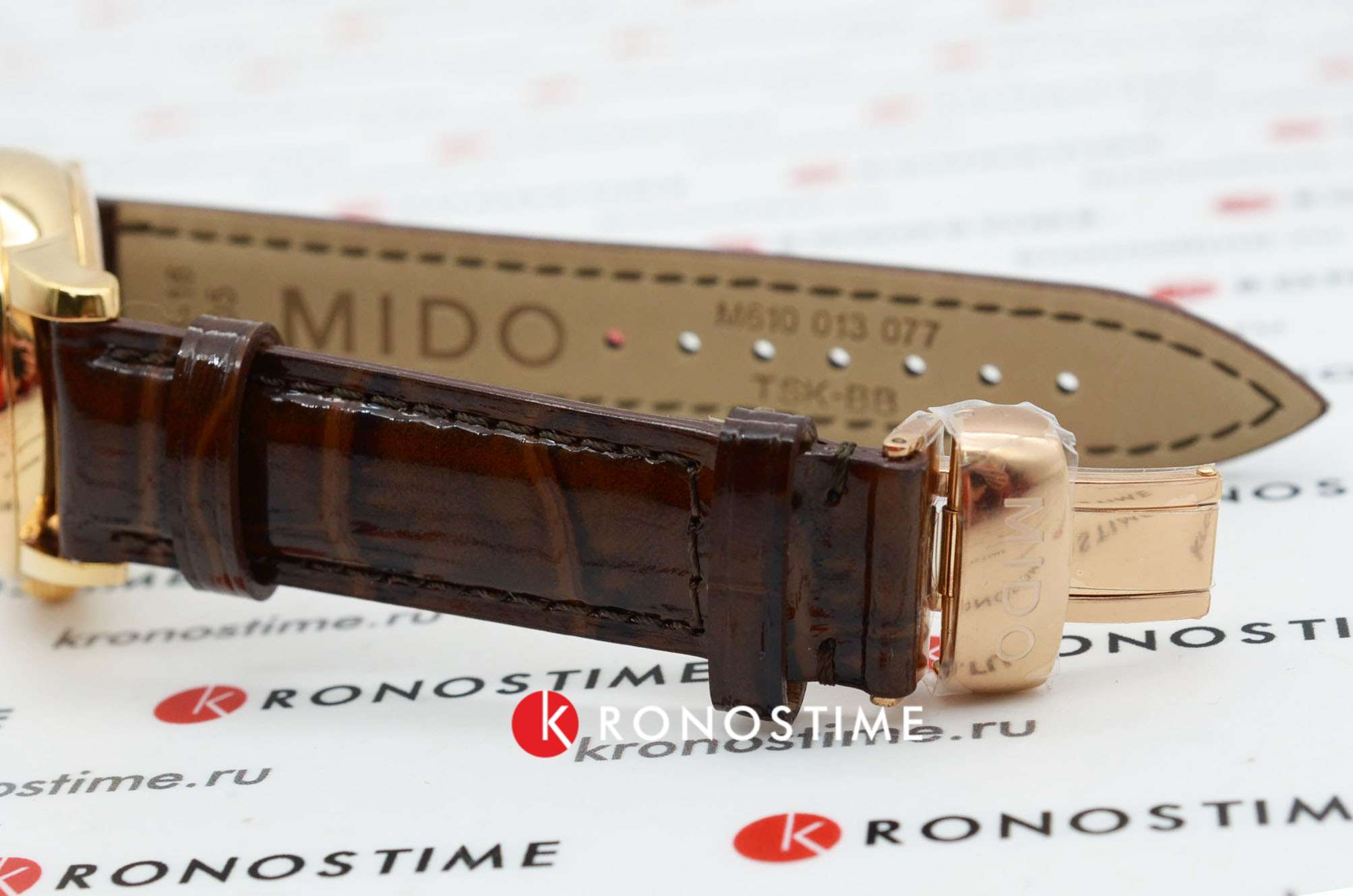 Mido Baroncelli Diamonds M007.207.36.291.00 – элегантные женские часы, сочетающие классический стиль и современные технологии. Корпус диаметром 33 мм и толщиной 9,4 мм выполнен из нержавеющей стали с PVD-покрытиемPVDУльтратонкое покрытие наносится в технике вакуумного напыления, сочетает в себе нитрид титана особой прочности со слоем золота или оксида хрома. Несёт в себе декоративную или защитную функцию. розового золота, обеспечивая прочность и стильный внешний вид. Бежево-коричневый циферблат украшен бриллиантами, окружающими окошко даты на позиции «6 часов», добавляя изысканности и блеска, а его поверхность защищена сапфировым стекломСапфировое стеклоПрочный и надёжный материал из кристалла сапфира синтетического происхождения, характеризующийся особой твёрдостью и устойчивостью к царапинам и повреждениям. с антибликовым покрытиемАнтибликовое покрытиеСлой оксида металла в 0,13-0,3 микрон, благодаря которому стекло часов не бликует и не отражает свет. Антибликовое покрытие уменьшает отражение света в 10 раз, обеспечивая отличную читаемость показателей циферблата., устойчивым к царапинам.