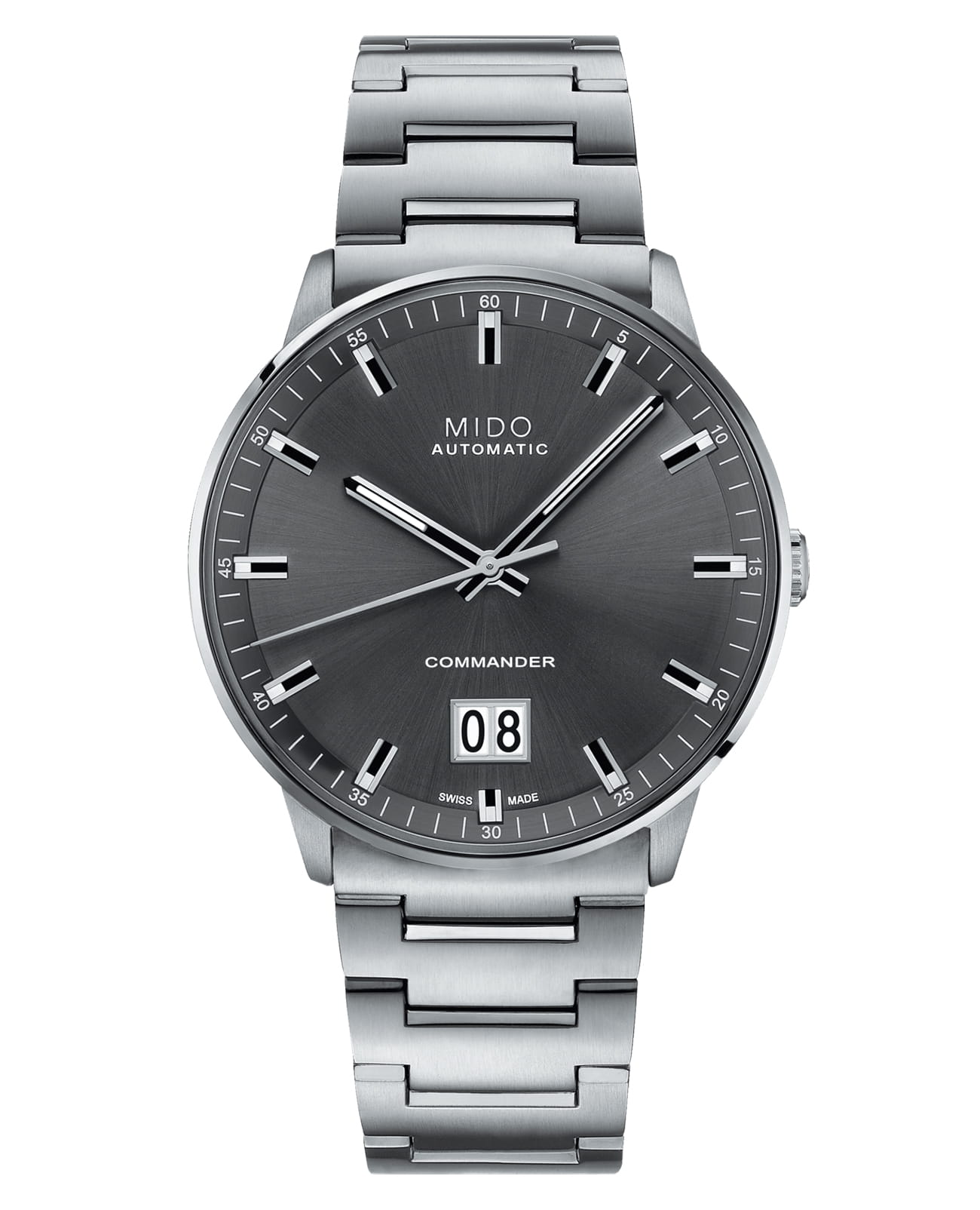 Мужские швейцарские механические часы Mido Commander Big Date M021.626.11.061.00, механический механизм (автоматический калибр) с высокой точностью. Часы Commander Big Date выпущены в честь 100-летнего юбилея марки. Крупное окошко даты в положении «6 часов» обеспечивает предельно удобную читаемость показаний. Сатинированный циферблат с солнечным узором отличается удивительной чистотой и строгостью, которую подчеркивает полированный безель. Сапфировое стекло устойчивое к появлению царапин, обладающее высокой прозрачностью. Класс водозащиты: 50 метров, позволит защитить корпус от случайных брызг или капель дождя. Корпус часов изготовлен из стали, серебристого цвета.