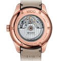 Модель оснащена автоматическим механизмом MIDO Caliber 80 (на базе ETA C07.621), обеспечивающим запас хода до 80 часов. Функционал включает индикацию часов, минут, секунд, дня недели и даты, расположенных в положении «3 часа».
