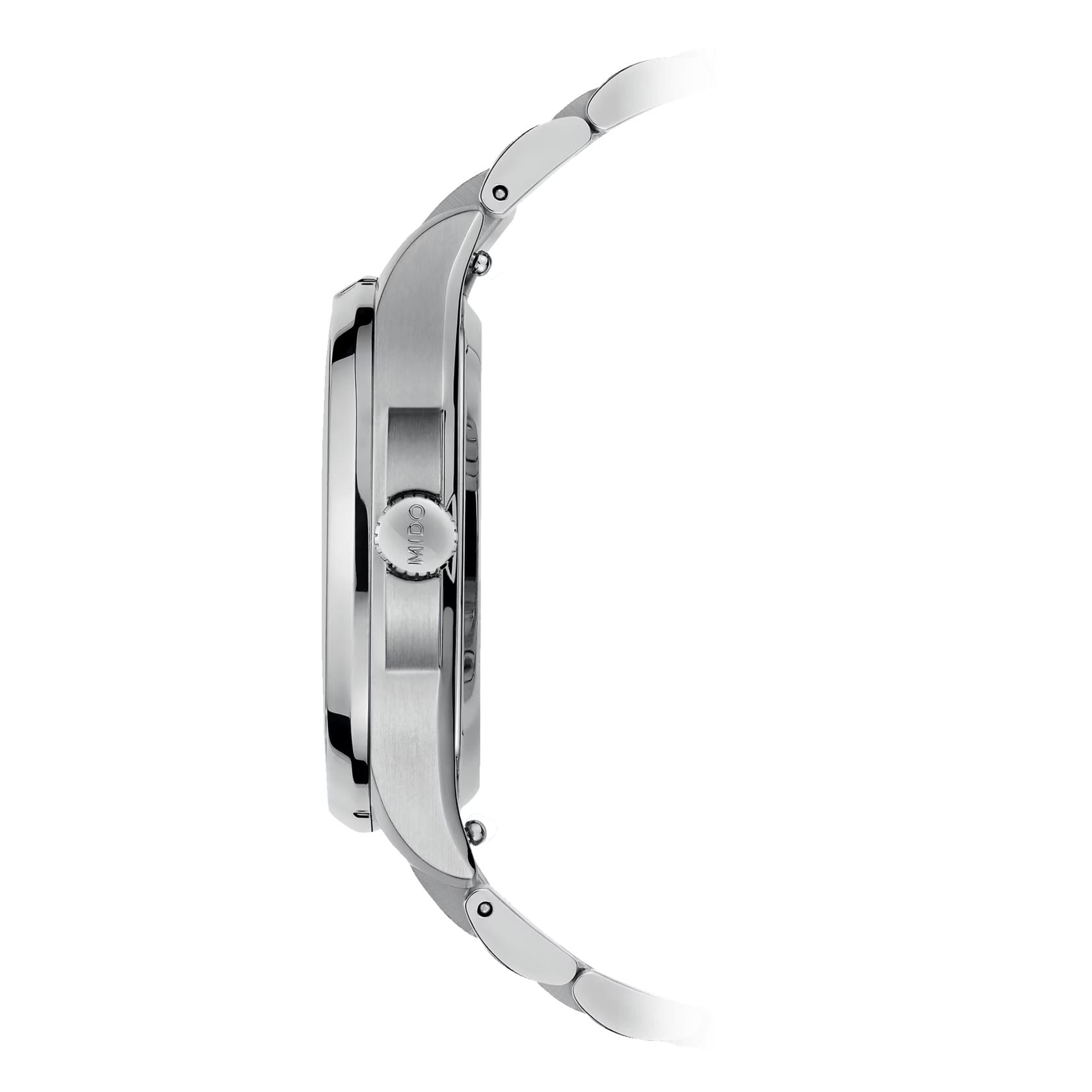 Женские швейцарские механические часы с бриллиантами Mido Multifort TV 35 M049.307.11.136.00, механический механизм с высокой точностью.  Циферблат c сапфировым стекломСапфировое стеклоПрочный и надёжный материал из кристалла сапфира синтетического происхождения, характеризующийся особой твёрдостью и устойчивостью к царапинам и повреждениям., устойчивым к появлению царапин и обладающее высокой прозрачностью. Класс водозащиты: 100 метров. Корпус часов изготовлен из стали. Часы с балансом из Nivachron™Nivachron™Специально разработанный инновационный сплав Nivachron™ повышает устойчивость часов к воздействию магнитных полей., обеспечивающим высокую устойчивость к магнитным полям и ударам, а также оснащены люминесцентным покрытиемЛюминесцентное покрытиеПозволяет считывать показания времени в темноте. Производители наносят на стрелки, часовые индексы, безель или поверхность циферблата светонакопительный состав, дающий холодное свечение., обеспечивающим отличную видимость даже при слабом освещении. Браслет из стали с раскладной застёжкойРаскладная застёжкаТакой тип застёжки используется только на браслетах из металла. Она никогда не раскрывается полностью, происходит разделение на 2 и более частей. Раскладывающая застёжка снизит вероятность потери часов к минимуму. обеспечивает комфортное ношение. Окошко даты в положении 12 часов.