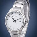Корпус часов изготовлен из титана. Титановый браслет на раскладной застёжкеРаскладная застёжкаТакой тип застёжки используется только на браслетах из металла. Она никогда не раскрывается полностью, происходит разделение на 2 и более частей. Раскладывающая застёжка снизит вероятность потери часов к минимуму. шириной 18 мм. Заводная головка с защитой. Арабская индикация времени. Окошко даты находятся в положении 3 часа.