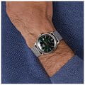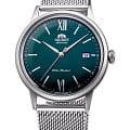 Мужские механические японские часы с запасом хода 40 часов Orient Automatic RA-AC0018E, механический механизм (автоматический калибр) с высокой точностью. Класс водозащиты: 30 метров, позволит защитить корпус от случайных брызг или капель дождя. Браслет с миланским плетением и раскладной застежкойРаскладная застёжкаТакой тип застёжки используется только на браслетах из металла. Она никогда не раскрывается полностью, происходит разделение на 2 и более частей. Раскладывающая застёжка снизит вероятность потери часов к минимуму.. Индикация даты на позиции трех часов. Зеленый циферблат с часовыми индексами в виде штрихов и цифр. Устойчивое к возникновению мелких механических повреждений минеральное стеклоМинеральное стеклоМинеральное стекло представляет собой искусственно выращенный минерал кварца. Такое стекло отличается особой устойчивостью к повреждениям и царапинам. Уступает по некоторым качествам сапфировому стеклу.. Прозрачная задняя крышка.