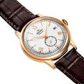 На циферблате расположено окошко даты в положении «3 часа», а также имеется возможность ручного завода и функции stop-second, что значительно упрощает настройку точного времени. Метки на циферблате выполнены в виде штрихов и римских цифр, что придает часам изысканный и традиционный вид.