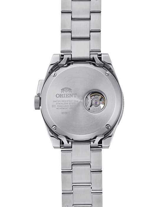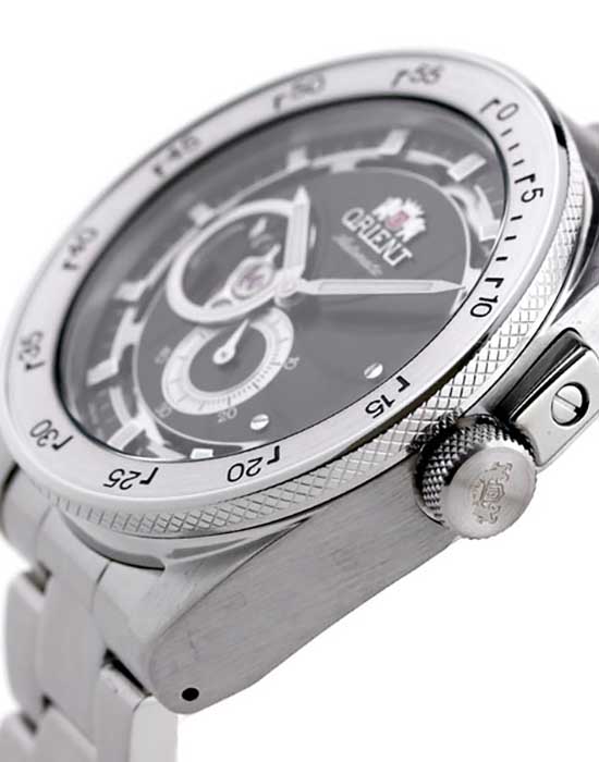 Orient RA-AR0201B — необычные и стильные часы из коллекции Revival, вдохновлённые эстетикой ретро-фотоаппаратов. Корпус диаметром 40,8 мм выполнен из нержавеющей стали с матовой отделкой. Безель стилизован под кольцо диафрагмы объектива, а заводная головка с защитой отсылает к рычагу перемотки плёнки, подчёркивая характерный винтажный образ. Чёрный циферблат с гильоше в форме лепестков оснащён открытым балансом на «9 часах» и малым секундным индикатором на «6 часах». Часовые метки и стрелки покрыты люминесцентным покрытиемЛюминесцентное покрытиеПозволяет считывать показания времени в темноте. Производители наносят на стрелки, часовые индексы, безель или поверхность циферблата светонакопительный состав, дающий холодное свечение. для надёжной читаемости в темноте. Циферблат защищён минеральным стекломМинеральное стеклоМинеральное стекло представляет собой искусственно выращенный минерал кварца. Такое стекло отличается особой устойчивостью к повреждениям и царапинам. Уступает по некоторым качествам сапфировому стеклу.. Внутри установлен японский автоматический механизм Orient F6S22 с 22 камнями, функцией ручного завода и стоп-секундой. Запас хода составляет до 40 часов. Модель комплектуется браслетом из нержавеющей стали с раскладной застёжкойРаскладная застёжкаТакой тип застёжки используется только на браслетах из металла. Она никогда не раскрывается полностью, происходит разделение на 2 и более частей. Раскладывающая застёжка снизит вероятность потери часов к минимуму., обеспечивающей надёжную посадку на запястье. Водонепроницаемость 50 метров делает часы устойчивыми к повседневным воздействиям воды.