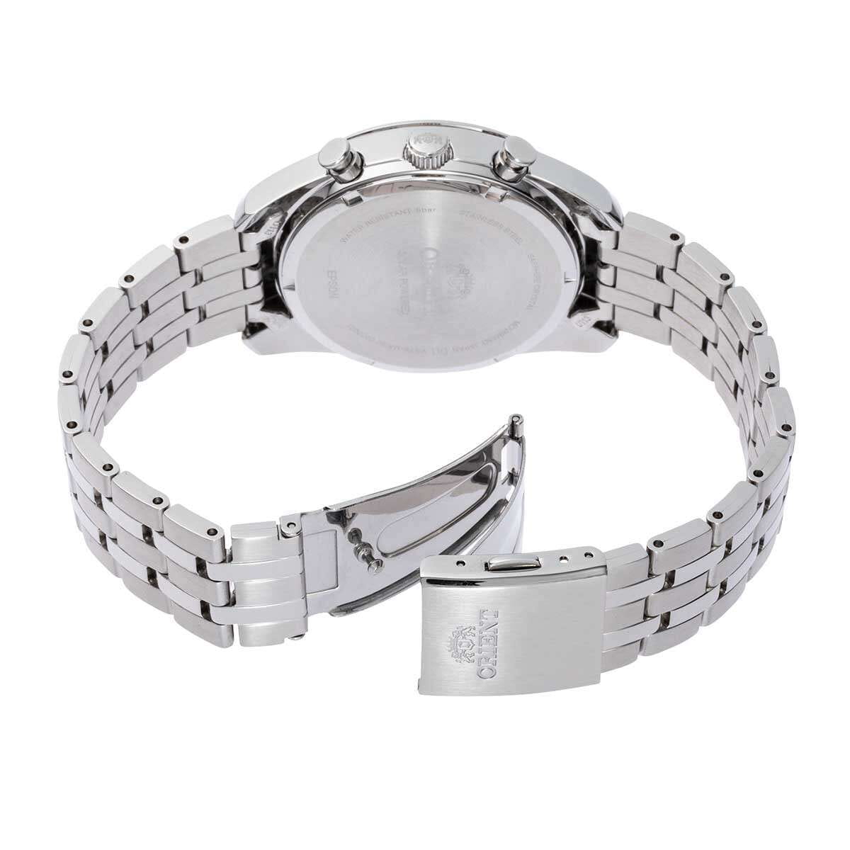 Модель Orient RA-TX0303L из коллекции Contemporary — это универсальный мужской хронограф с современным дизайном и продуманной функциональностью. Корпус диаметром 40 мм выполнен из нержавеющей стали, подчёркивая надёжность и деловой стиль модели. Тёмно-синий циферблат дополнен тремя счётчиками: секунд, минут хронографа и 24-часового индикатора. Стрелки и метки покрыты люминесцентным покрытиемЛюминесцентное покрытиеПозволяет считывать показания времени в темноте. Производители наносят на стрелки, часовые индексы, безель или поверхность циферблата светонакопительный состав, дающий холодное свечение., что обеспечивает удобство считывания информации в любое время суток. Модель оснащена солнечным кварцевым механизмом Orient Cal. VS752, который накапливает энергию от света и обеспечивает до 6 месяцев автономной работы. Циферблат защищён сапфировым стекломСапфировое стеклоПрочный и надёжный материал из кристалла сапфира синтетического происхождения, характеризующийся особой твёрдостью и устойчивостью к царапинам и повреждениям., устойчивым к царапинам. В функционал входит хронографХронографФункция позволяет измерять отрезки времени с особой точностью: часы, минуты, секунды. Верным признаком хронографа является наличие на циферблате 3 дополнительных окошек-счётчиков. и отображение даты. Браслет выполнен из нержавеющей стали и дополнен надёжной раскладной застёжкойРаскладная застёжкаТакой тип застёжки используется только на браслетах из металла. Она никогда не раскрывается полностью, происходит разделение на 2 и более частей. Раскладывающая застёжка снизит вероятность потери часов к минимуму. с защитным механизмом. Водонепроницаемость составляет 50 метров, что делает часы подходящими для повседневной эксплуатации. Orient RA-TX0303L — это практичный и элегантный хронограф, идеально подходящий для тех, кто ценит точность, технологичность и сдержанный стиль.