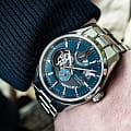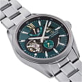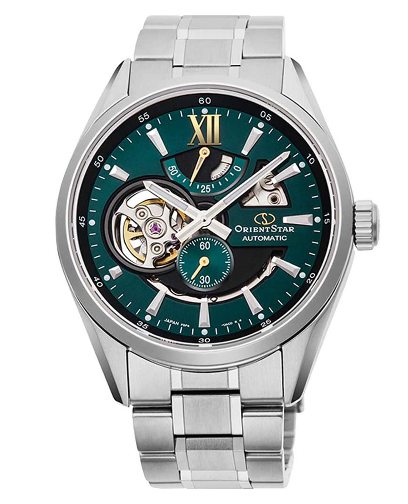 Мужские наручные часы Orient RE-AV0114E Star сочетают в себе классический дизайн и надежность современных технологий. Модель обладает круглым корпусом диаметром 41 мм, изготовленным из нержавеющей стали, что обеспечивает высокую устойчивость к внешним воздействиям. Браслет выполнен из нержавеющей стали с раскладной застежкойРаскладная застёжкаТакой тип застёжки используется только на браслетах из металла. Она никогда не раскрывается полностью, происходит разделение на 2 и более частей. Раскладывающая застёжка снизит вероятность потери часов к минимуму., гарантирующей комфортное ношение и безопасность. Зеленый циферблат, идеально чистый, защищен сапфировым стекломСапфировое стеклоПрочный и надёжный материал из кристалла сапфира синтетического происхождения, характеризующийся особой твёрдостью и устойчивостью к царапинам и повреждениям. с антибликовым покрытиемАнтибликовое покрытиеСлой оксида металла в 0,13-0,3 микрон, благодаря которому стекло часов не бликует и не отражает свет. Антибликовое покрытие уменьшает отражение света в 10 раз, обеспечивая отличную читаемость показателей циферблата., что делает его особенно привлекательным и функциональным для повседневного использования. Часы работают на автоматическом механизме F6F44 с индикатором запаса хода, который обеспечивает автономную работу до 50 часов без необходимости ручного подзавода В модели также предусмотрены светонакопители на стрелках и метках для лучшей видимости в темноте. Водонепроницаемость составляет 10 атмосфер (100 метров), что позволяет использовать их во время плавания и других водных видов спорта, однако не рекомендуется для глубоководного дайвинга.