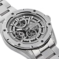 Компактный циферблат дополнен крупными часовыми метками и стрелками, такое исполнение позволяет идеально считывать показания времени. Дизайнеры акцентируют внимание на лаконичном оформлении, делая осуществимой возможность сочетать аксессуар с любой одеждой. Наручные часы оснащаются высокоточными механизмами собственного изготовления, ни одна деталь не изготавливается на сторонних производствах. Прочное сапфировое стеклоСапфировое стеклоПрочный и надёжный материал из кристалла сапфира синтетического происхождения, характеризующийся особой твёрдостью и устойчивостью к царапинам и повреждениям. имеет антибликовое покрытие. 100 метров, позволит плавать, нырять и заниматься другими водными видами спорта.