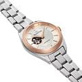 Женские механические часы с автоподзаводом Orient Star — изящный скелетон в японском исполнении. Корпус из нержавеющей стали. БезельБезельВнешний ободок, закрепляющий стекло. В спортивных часах так называется поворотное кольцо с делениями на циферблате, выполняет роль таймера – замеряет отрезки времени на шкале. Неподвижный безель – элемент декора. Однонаправленно вращающийся безель на дайверских часах позволяет фиксировать моменты погружения и выныривания на поверхность. из нержавеющей стали с IP-покрытиемIP-покрытиеМетод ионного напыления. Демонстрирует повышенную устойчивость к истиранию, окислению и химическим веществам. Под воздействием высокого давления и температуры около 1500°C молекулы металла надёжно соединяются с частицами корпуса часов. цвета розового золота, диаметром 30 мм. Циферблат — серебристый, с текстурой Sunray, штриховыми метками и кристаллом на отметке 12; сквозь прозрачное окошко виден баланс механизма. Стекло — сапфировоеСапфировое стеклоПрочный и надёжный материал из кристалла сапфира синтетического происхождения, характеризующийся особой твёрдостью и устойчивостью к царапинам и повреждениям. с антибликовым покрытием. Браслет — стальной 316L на раскладной застёжкеРаскладная застёжкаТакой тип застёжки используется только на браслетах из металла. Она никогда не раскрывается полностью, происходит разделение на 2 и более частей. Раскладывающая застёжка снизит вероятность потери часов к минимуму.. Водонепроницаемость 50 м. Идеальный выбор для тех, кто ценит японское качество и утончённый дизайн.