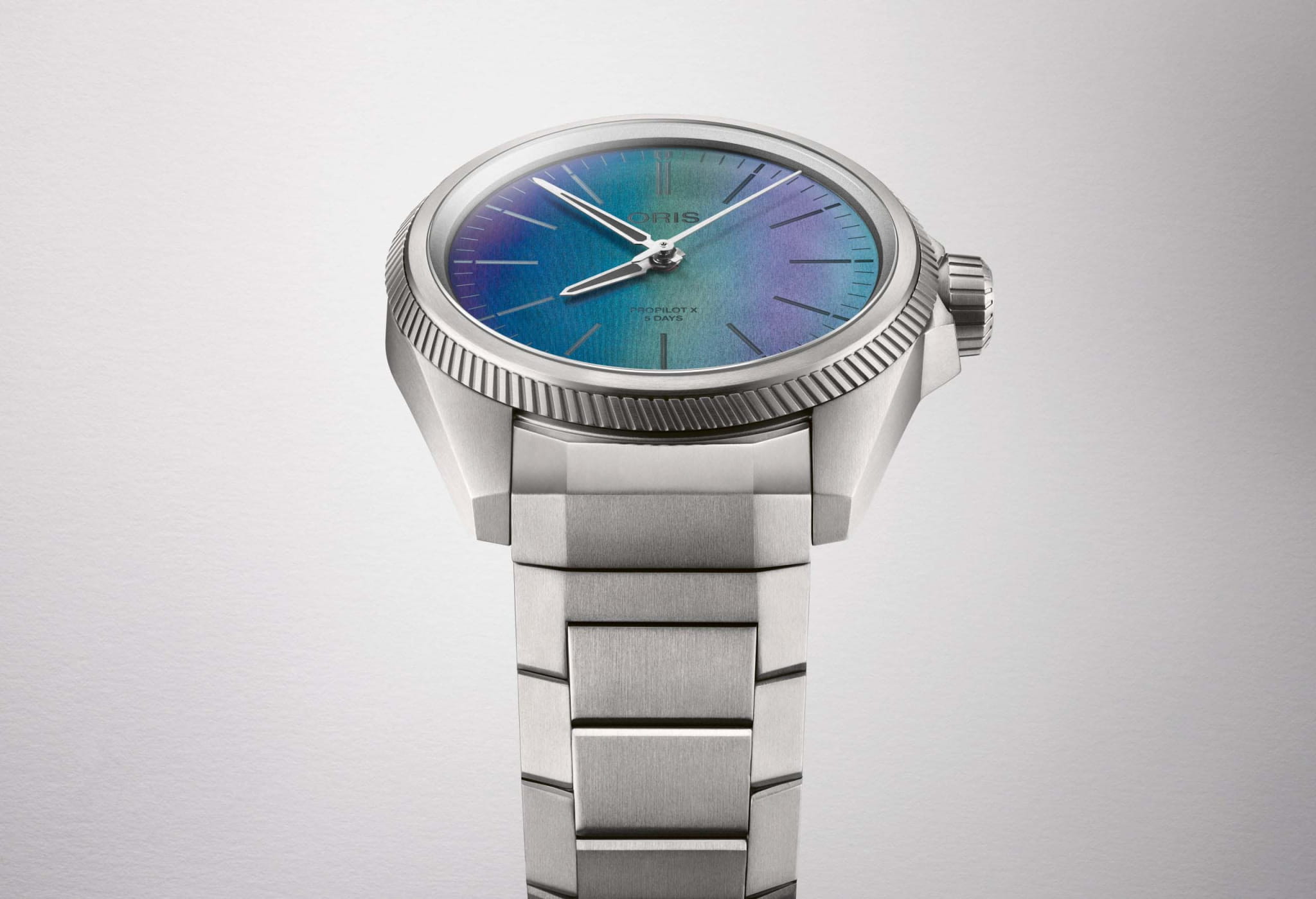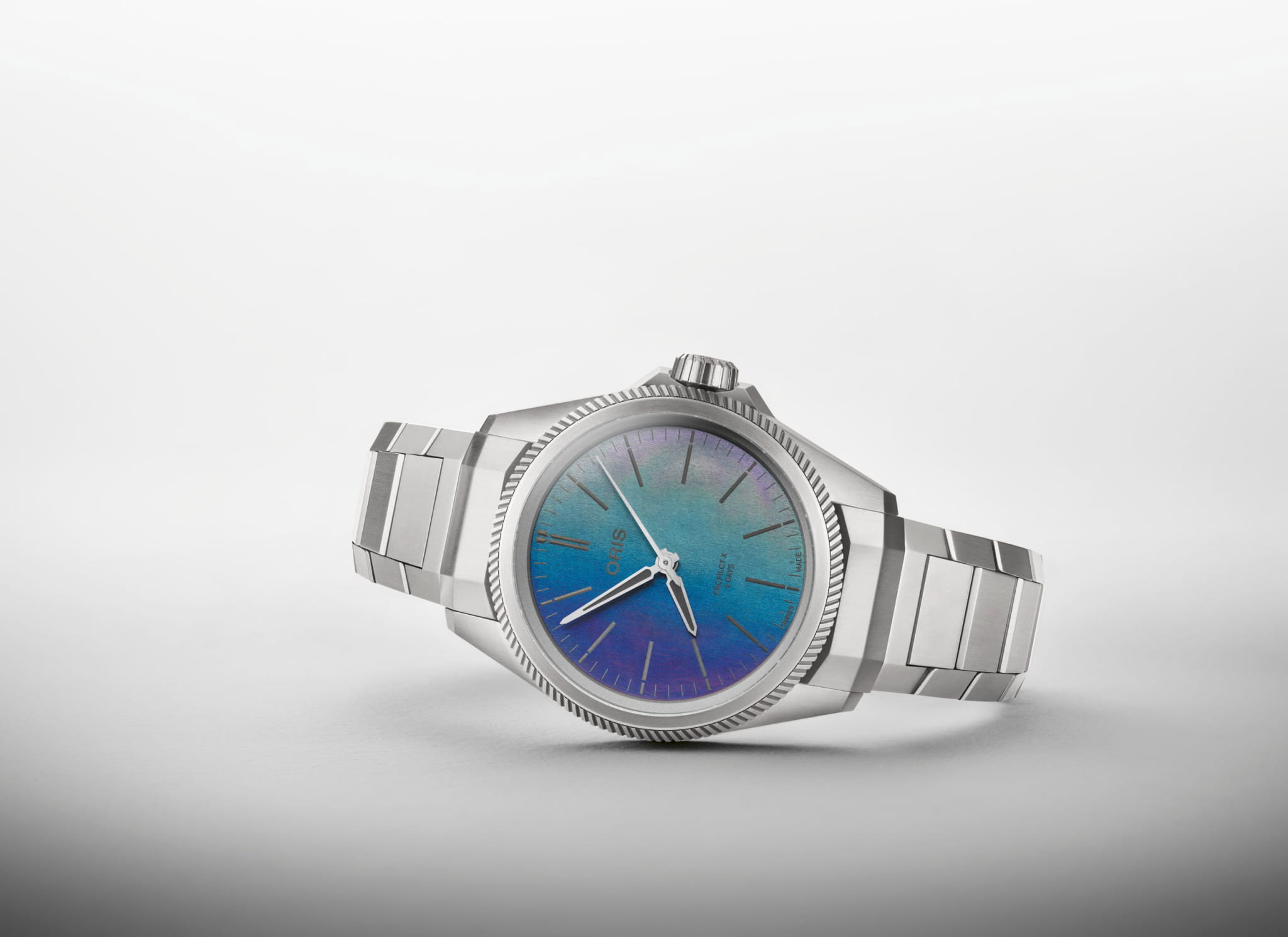 В циферблате часов использована современная технология, вдохновленная биомимикрией, отражающая чудеса природы, как переливающиеся крылья жука. Разработанная совместно с ETH Zürich, эта технология впервые использована в часах, что позволяет наслаждаться запястьем. Модель ProPilot X Calibre 400 Laser в 39-миллиметровом титановом корпусе и на браслете украшена разноцветным циферблатом, созданным с помощью новой лазерной техники. Синий, зеленый и фиолетовый цвета достигаются за счет отраженного света, а не пигмента. Технологическая красота.