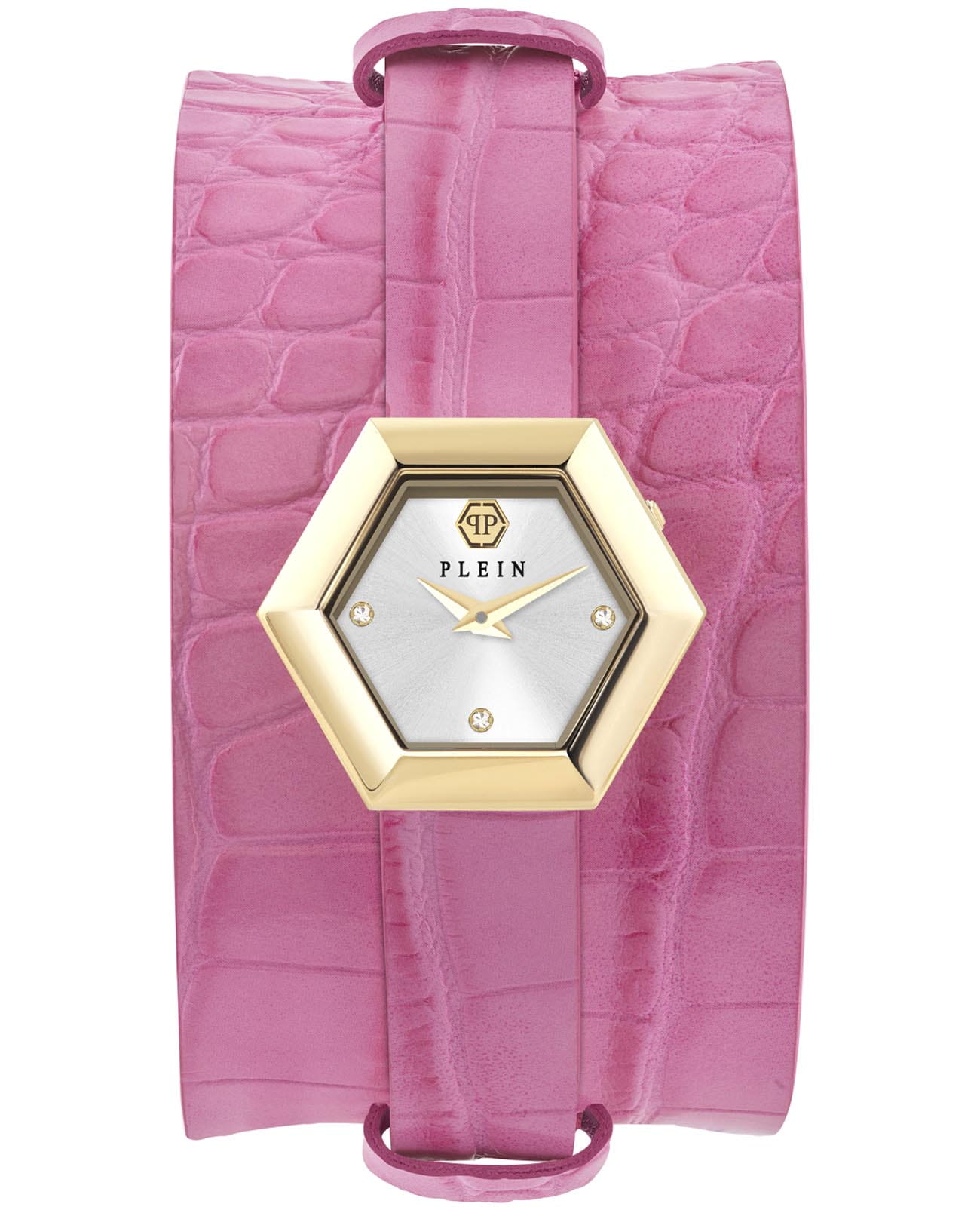 Женские кварцевые часы Philipp Plein La Jungle De Plein PW6FA0125_SET — это стильное сочетание элегантности и современного дизайна. Изящный корпус выполнен из нержавеющей стали с PVD-покрытиемPVDУльтратонкое покрытие наносится в технике вакуумного напыления, сочетает в себе нитрид титана особой прочности со слоем золота или оксида хрома. Несёт в себе декоративную или защитную функцию. золотистого цвета, диаметром 28 мм, что придаст образу женственности и романтизма. Изысканный циферблат с метками в виде точек украшены кристаллами придает модели особый блеск. Циферблат защищен минеральным стекломМинеральное стеклоМинеральное стекло представляет собой искусственно выращенный минерал кварца. Такое стекло отличается особой устойчивостью к повреждениям и царапинам. Уступает по некоторым качествам сапфировому стеклу., обеспечивающий устойчивость к царапинам. Часы оснащены надежным кварцевым механизмом. Кожаный ремешок на стандартной застёжке, гарантирует комфортное и безопасное ношение. Класс водозащиты: 50 метров позволит защитить корпус от случайных брызг или капель дождя. Phlipp Plein — отличный выбор для тех, кто ценит яркость и качество. В комплекте доп. ремешок из искусственной кожи.