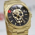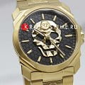 Мужские кварцевые часы с фирменным изображением черепа Philipp Plein The Skull King PWLAA0822, кварцевый механизм с высокой точностью. Класс водозащиты: 50 метров, позволит защитить корпус от случайных брызг или капель дождя. Корпус и браслет часов изготовлены из стали с IP-покрытиемIP-покрытиеМетод ионного напыления. Демонстрирует повышенную устойчивость к истиранию, окислению и химическим веществам. Под воздействием высокого давления и температуры около 1500°C молекулы металла надёжно соединяются с частицами корпуса часов. цвета желтое золото. Прочное минеральное стеклоМинеральное стеклоМинеральное стекло представляет собой искусственно выращенный минерал кварца. Такое стекло отличается особой устойчивостью к повреждениям и царапинам. Уступает по некоторым качествам сапфировому стеклу. устойчивое к мелким механическим повреждениям. Браслет дополняет застёжка-бабочка с кнопкамиЗастёжка "бабочка"Такой вид застёжки дополняется предохранителями, помогающими избежать случайного раскрытия браслета. Обладают изящным исполнением. .