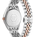 Philipp Plein Date Superlative Gent PWMFA0625 - это дерзкие и бескомпромиссные часы, воплощающие бунтарский дух бренда. Диаметр круглого корпуса из прочной нержавеющей стали равен 41 мм. Стальной браслет на застёжке «бабочка» с кнопкамиЗастёжка "бабочка"Такой вид застёжки дополняется предохранителями, помогающими избежать случайного раскрытия браслета. Обладают изящным исполнением. обеспечивает надёжную фиксацию и комфортное ношение. Метки в виде кристаллов Preciosa. Минеральное стеклоМинеральное стеклоМинеральное стекло представляет собой искусственно выращенный минерал кварца. Такое стекло отличается особой устойчивостью к повреждениям и царапинам. Уступает по некоторым качествам сапфировому стеклу. защищает циферблат от царапин. Люминесцентное покрытиеЛюминесцентное покрытиеПозволяет считывать показания времени в темноте. Производители наносят на стрелки, часовые индексы, безель или поверхность циферблата светонакопительный состав, дающий холодное свечение. стрелок и меток позволит следить за временем даже в полной темноте. БезельБезельВнешний ободок, закрепляющий стекло. В спортивных часах так называется поворотное кольцо с делениями на циферблате, выполняет роль таймера – замеряет отрезки времени на шкале. Неподвижный безель – элемент декора. Однонаправленно вращающийся безель на дайверских часах позволяет фиксировать моменты погружения и выныривания на поверхность. с PVD-покрытиемPVDУльтратонкое покрытие наносится в технике вакуумного напыления, сочетает в себе нитрид титана особой прочности со слоем золота или оксида хрома. Несёт в себе декоративную или защитную функцию.. Граненая заводная головка. Влагозащита: 50 метров, позволит защитить корпус от случайных брызг или капель дождя. Идеальный аксессуар для тех, кто ценит индивидуальность и не боится выделяться из толпы.