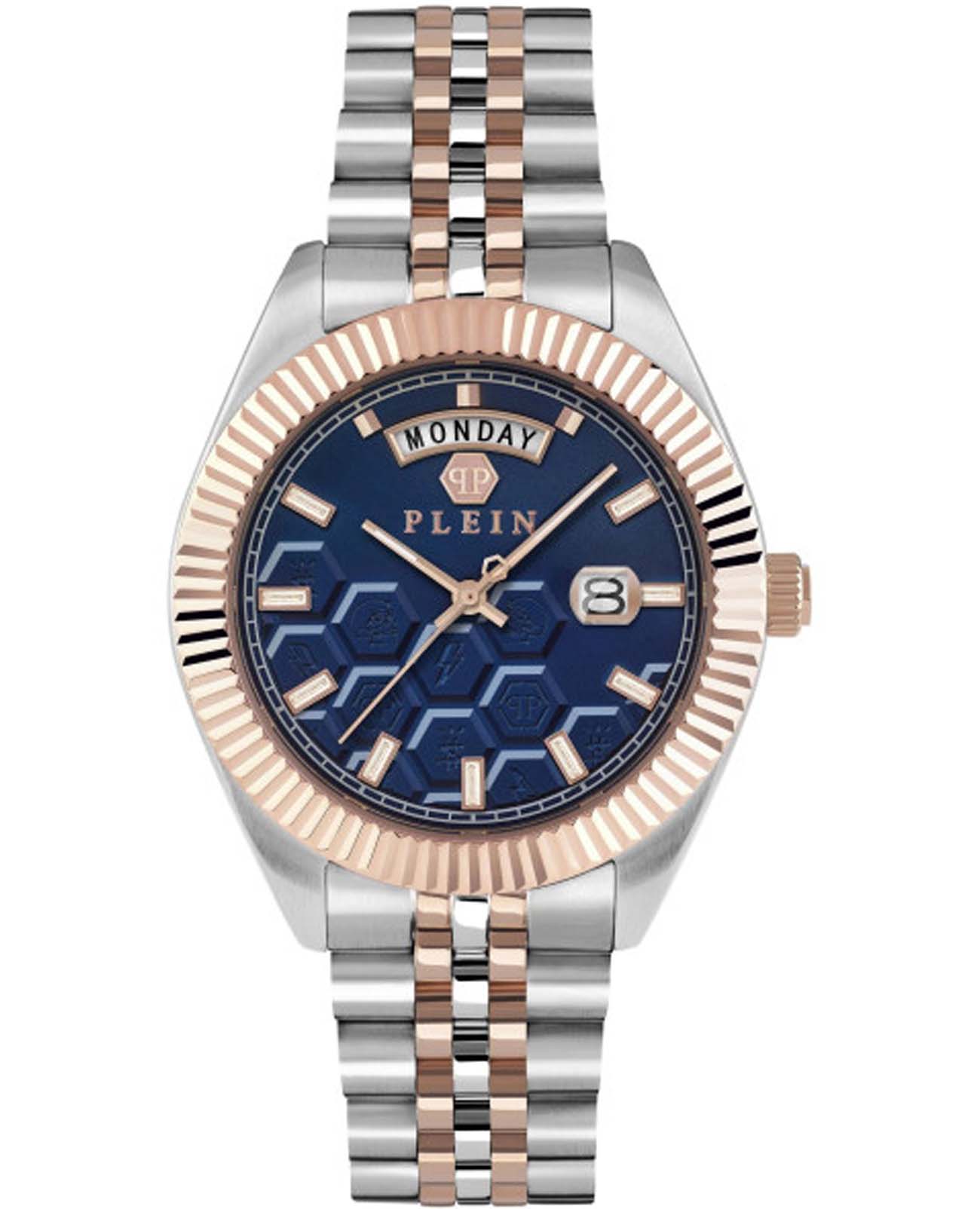 Мужские кварцевые часы Philipp Plein Date Superlative Gent PWPVA0524, кварцевый механизм с высокой точностью. Метки в виде штрихов. Минеральное стеклоМинеральное стеклоМинеральное стекло представляет собой искусственно выращенный минерал кварца. Такое стекло отличается особой устойчивостью к повреждениям и царапинам. Уступает по некоторым качествам сапфировому стеклу. устойчивое к мелким механическим повреждениям. Фирменная дизайнерская упаковка. БезельБезельВнешний ободок, закрепляющий стекло. В спортивных часах так называется поворотное кольцо с делениями на циферблате, выполняет роль таймера – замеряет отрезки времени на шкале. Неподвижный безель – элемент декора. Однонаправленно вращающийся безель на дайверских часах позволяет фиксировать моменты погружения и выныривания на поверхность. с IP-покрытиемIP-покрытиеМетод ионного напыления. Демонстрирует повышенную устойчивость к истиранию, окислению и химическим веществам. Под воздействием высокого давления и температуры около 1500°C молекулы металла надёжно соединяются с частицами корпуса часов.. Стрелки и метки с люминесцентным покрытиемЛюминесцентное покрытиеПозволяет считывать показания времени в темноте. Производители наносят на стрелки, часовые индексы, безель или поверхность циферблата светонакопительный состав, дающий холодное свечение.. Стальной браслет с частичным IP-покрытиемIP-покрытиеМетод ионного напыления. Демонстрирует повышенную устойчивость к истиранию, окислению и химическим веществам. Под воздействием высокого давления и температуры около 1500°C молекулы металла надёжно соединяются с частицами корпуса часов. на раскладной застёжкеРаскладная застёжкаТакой тип застёжки используется только на браслетах из металла. Она никогда не раскрывается полностью, происходит разделение на 2 и более частей. Раскладывающая застёжка снизит вероятность потери часов к минимуму.. Окошко дня недели находится в положении 12 часов.
