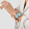 Яркие женские часы с минеральным стекломМинеральное стеклоМинеральное стекло представляет собой искусственно выращенный минерал кварца. Такое стекло отличается особой устойчивостью к повреждениям и царапинам. Уступает по некоторым качествам сапфировому стеклу. Philipp Plein PWTAA0323, кварцевый механизм с высокой точностью. Класс водозащиты: 50 метров, позволит защитить корпус от случайных брызг или капель дождя. Корпус часов изготовлен из стали с IP-покрытиемIP-покрытиеМетод ионного напыления. Демонстрирует повышенную устойчивость к истиранию, окислению и химическим веществам. Под воздействием высокого давления и температуры около 1500°C молекулы металла надёжно соединяются с частицами корпуса часов.. Стрелки и метки с люминесцентным покрытиемЛюминесцентное покрытиеПозволяет считывать показания времени в темноте. Производители наносят на стрелки, часовые индексы, безель или поверхность циферблата светонакопительный состав, дающий холодное свечение.. Стальной корпус с геометричным безелем, инкрустированным кристаллами.