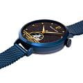 Циферблат открыт — оснащён «open heart», благодаря чему баланс вместе с мельчайшими деталями механизма видны сквозь аккуратное окно. Это добавляет визуальную глубину и подчёркивает технический шарм модели. Эстетика поддерживается тонкими стрелками и метками, покрытыми люминесцентным покрытиемЛюминесцентное покрытиеПозволяет считывать показания времени в темноте. Производители наносят на стрелки, часовые индексы, безель или поверхность циферблата светонакопительный состав, дающий холодное свечение., что обеспечивает удобное считывание показаний в условиях пониженного освещения.